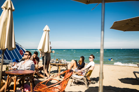 Ambiance et activités estivales, en bord de plage, bar ou camping de la côte des Pyrénées-Orientales, au bord de la Méditerranée.