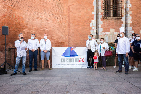 Perpignan, 27 mai 2020, rassemblement et manifestation des restaurateurs et hoteliers du département des Pyrénées-Orientales et de Perpignan, sous l'impulsion de l'UMIH66.