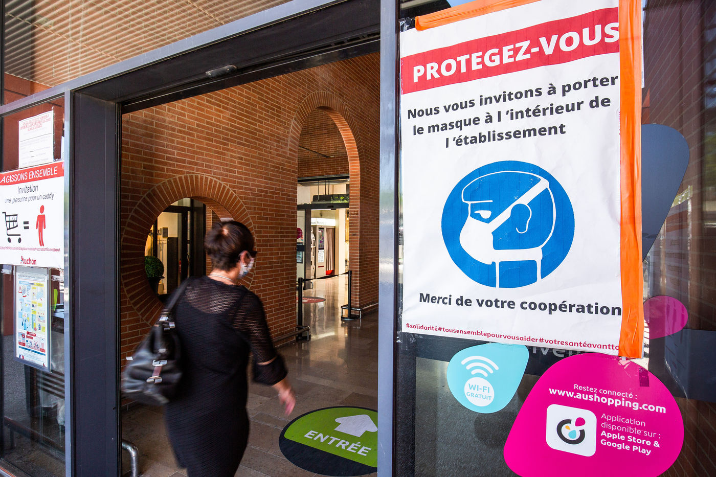 Rappel des gestes barrières, vente de masques, protection des caissières, reouverture des boutiques des galeries marchandes (...), ou comment s'organise un supermarché en période de déconfinement.