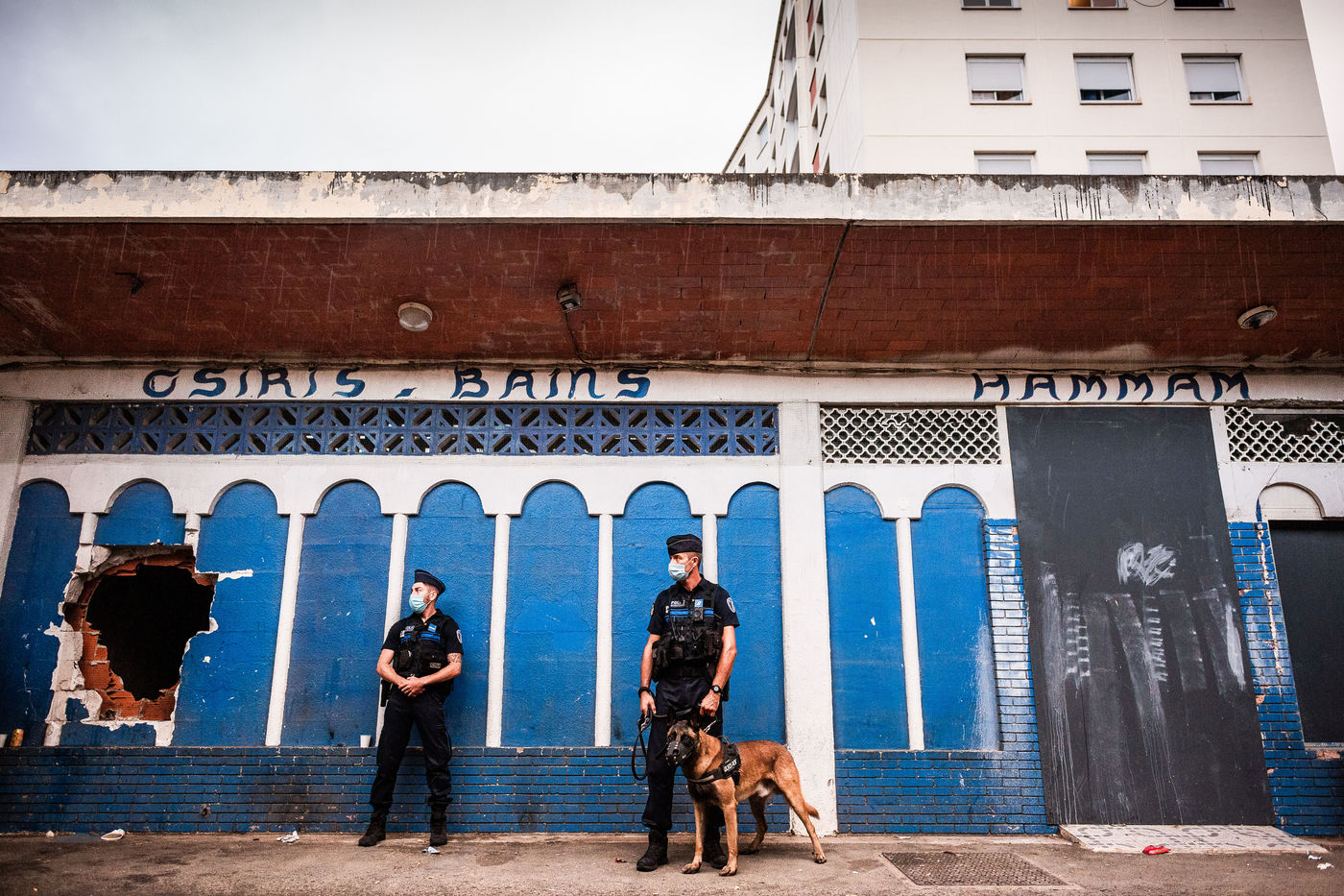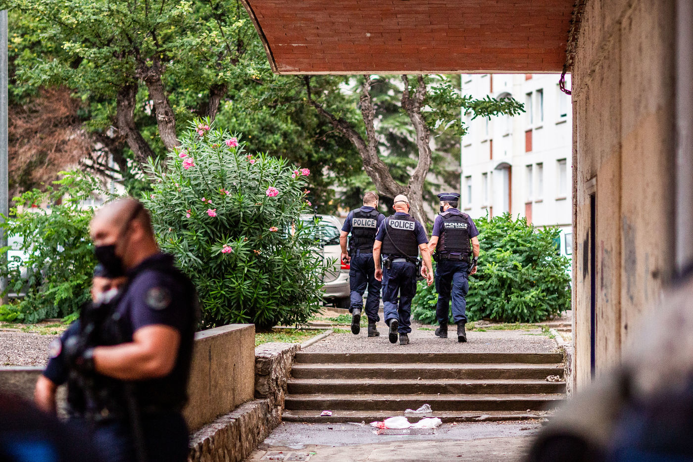 Perpignan, 22 septembre 2020. Opération de sécurisation et de contrôles organisée par la direction départementale de la sécurité publique, à la cité du Champs de Mars, Saint Gauderique.