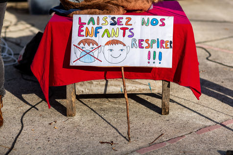 Prades, 21 novembre 2020, manifestation hebdomadaire d'environ 300 personnes, organisée par les mamans en colère et autres associations et manifestants anti-masques pour adultes comme pour enfants.