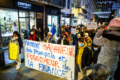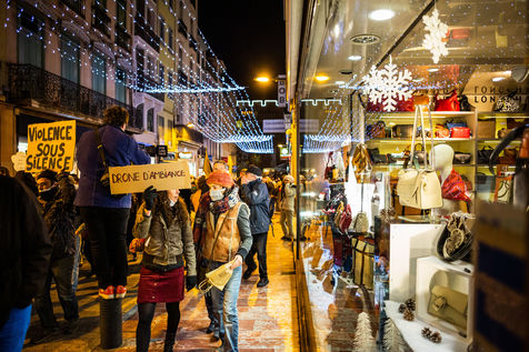 Perpignan, 3 décembre 2020, manifestation contre le projet de loi de sécurité globale, à l'initiative de nombreuses association et forces politiques locales, notamment d'extrème gauche.