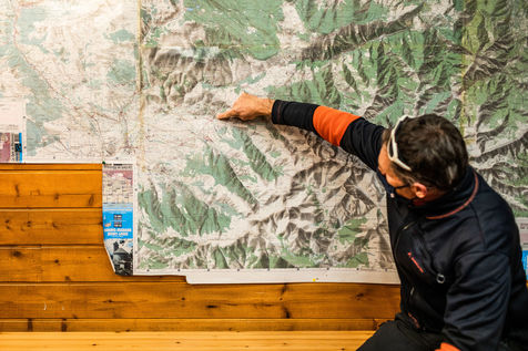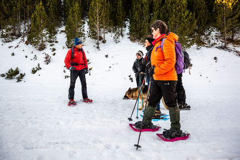 Massif du Puigmal (66), Janvier 2021, randonnée en raquette sur la trace de la faune hivernale, en Cerdagne, avec Christophe, guide du groupement Ozone, entre l'ancienne station de ski du Puigmal (commune d'Err) et la cabane de la Mata.