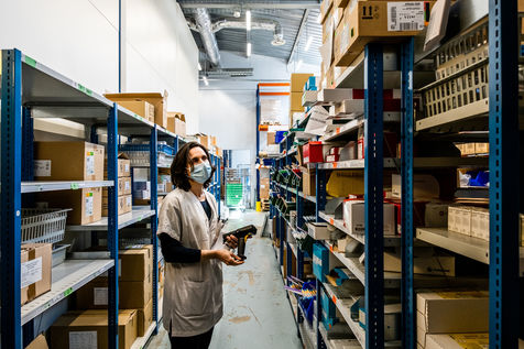 Perpignan, 12 avril 2021, La Pharmacie de l'Hopital de Perpignan stocke, conditionne, prépare et distribue les vaccins contre le Covid, notamment Pfizer et Moderna. S'ils sont à destination de près de 130 sites de vaccination, le plus gros consommateur de ces doses est actuellement le vaccinodrome de la ville. Un nouveau centre de vaccination organisé par l'ARS, le SDIS66, et l'Hopital de Perpignan, qui vaccine environ 1200 personnes par jour, en espérant atteindre les 2000 d'ici fin avril.