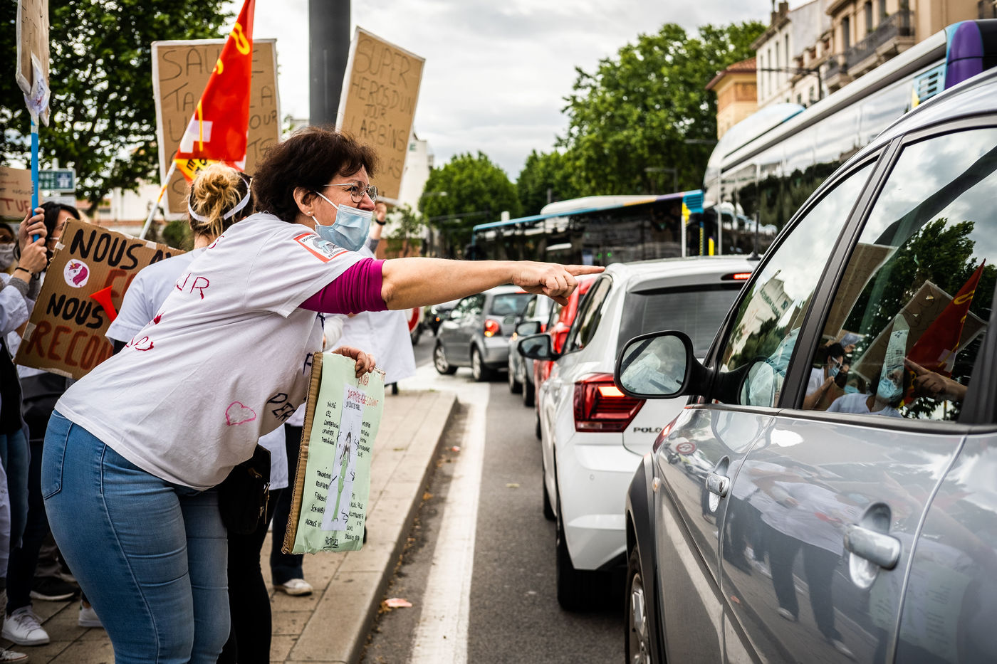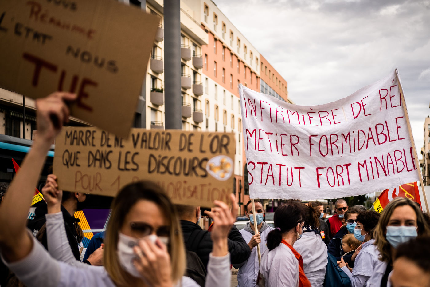 11 mai 2021, Perpignan, Rassemblement et manifestation des personnels de réanimation de l'hôpital de Perpignan, revendiquant une revalorisation de salaire et une meilleure reconnaissance face à leur travail, en particulier durant la pandémie de covid 19.