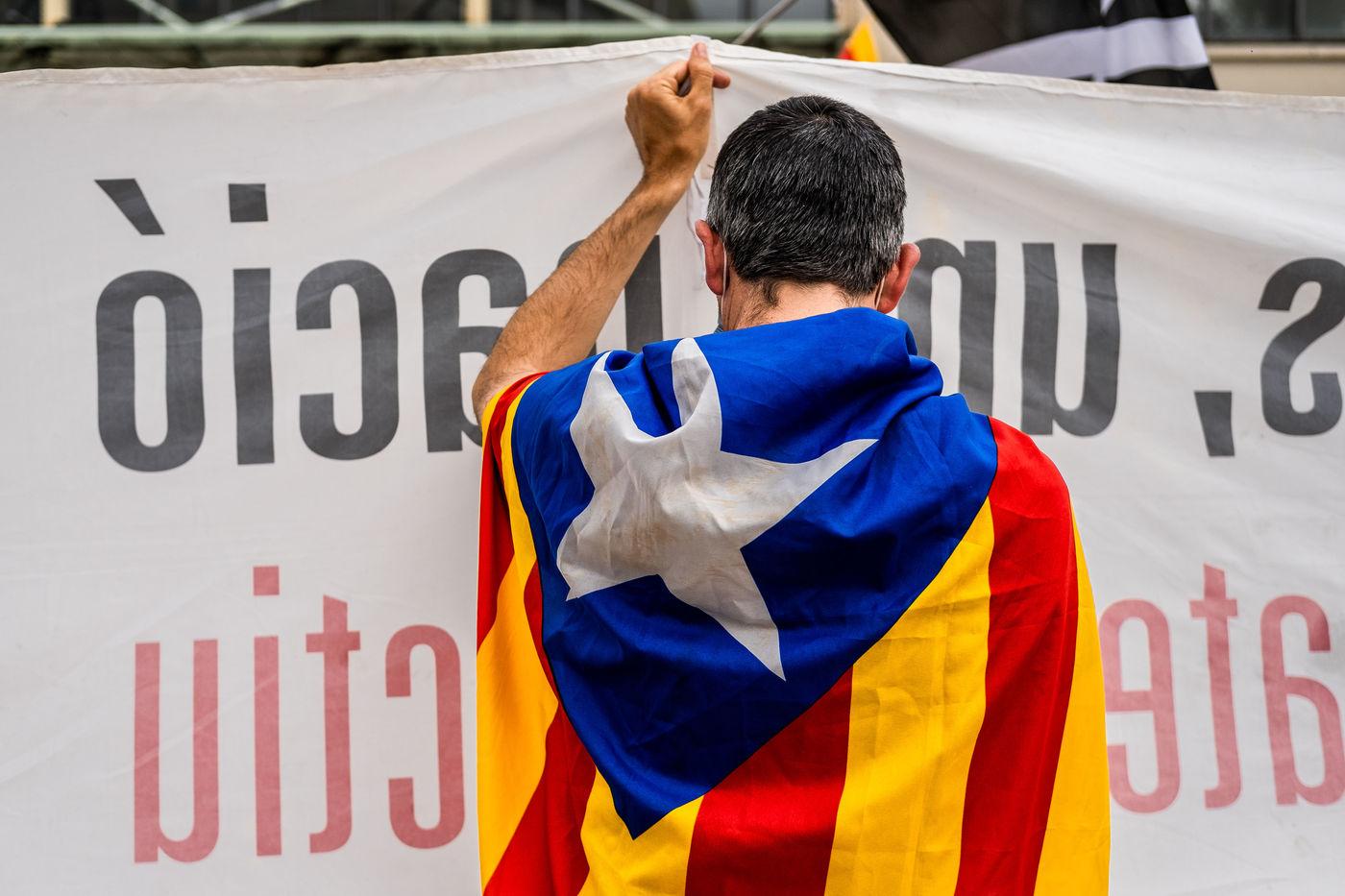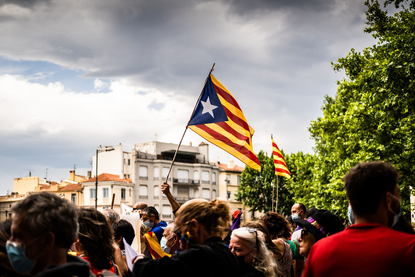 Perpignan, 29 mai 2021, manifestation et rassemblement en faveur des langues régionales et de l'enseignement immersif du catalan suite à la décision du conseil constitutionnel de censurer cet enseignement dans le cadre de l'étude constitutionnelle du projet de loi de promotion des langues régionales.