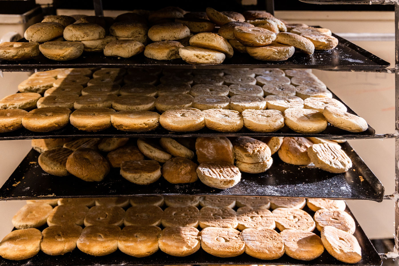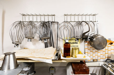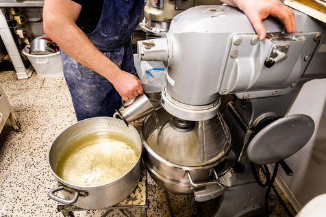 Arles sur Tech, Avril 2022, préparation de Rousquilles, le gateau emblématique du Pays Catalan, de l'Est des Pyrénées et de sa gastronomie, en Haut Vallespir, à la Patisserie Touron, spécialiste de la Rousquille, sans trou, fondante et glacée au sucre et citron.