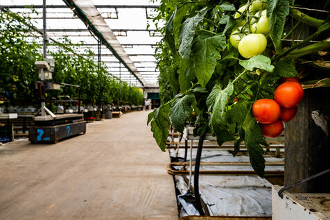 Saint Cyprien, janvier 2023, coopérative Sud Roussillon, de Bruno Vila, producteur de tomate hors-sol, sous serres chauffées et mécanisées. Plantation de 10 hectares de tomates grappes, bio, en production continue sur toute l'année.