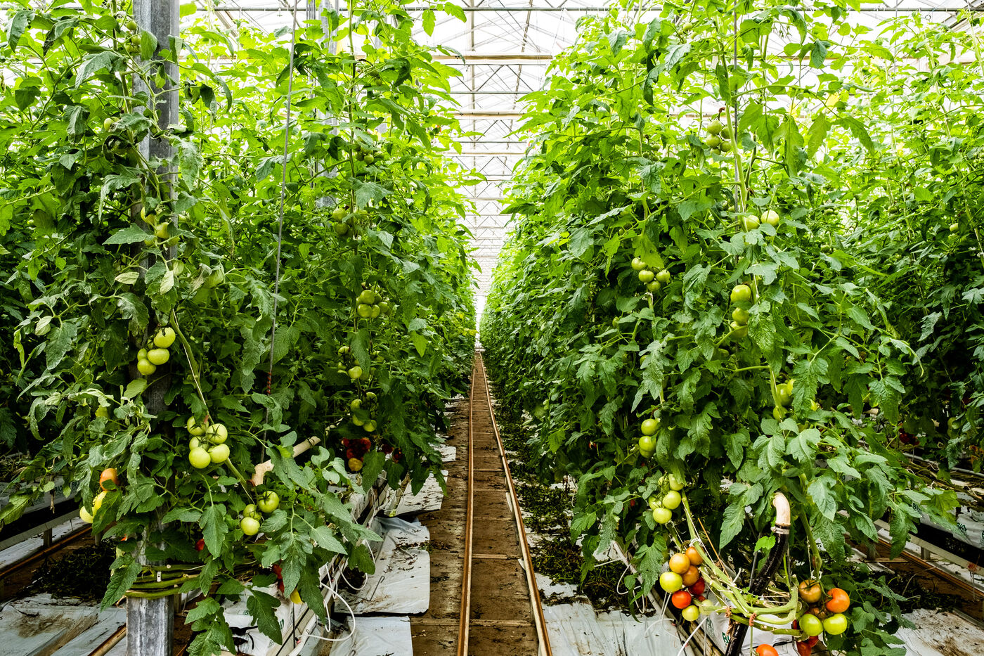 Saint Cyprien, January 2023, Sud Roussillon cooperative, Bruno Vila, producer of tomatoes out of soil, under heated and mechanized greenhouses. Plantation of 10 hectares of organic grape tomatoes, in continuous production throughout the year.