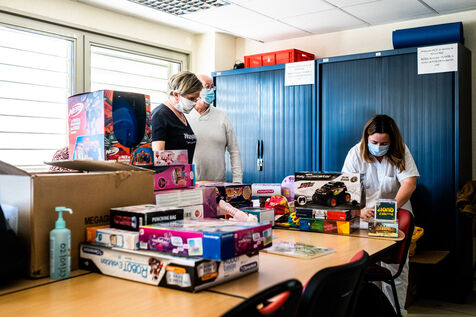 Perpignan, February 1, 2023, distribution of gifts by the superheroes of the association JoaJoie, in the pediatric ward of the hospital of Perpignan.