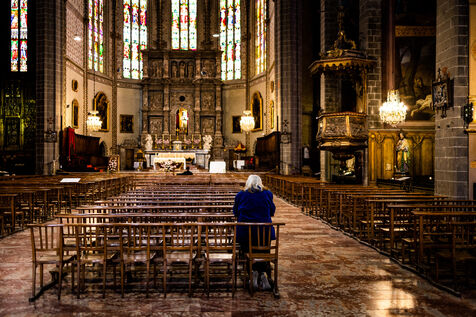 Perpignan, 18 mars 2023, procession religieuse pour implorer la pluie, organisée par le diocèse de Perpignan, à la demande d'un viticulteur, Georges Puig, touché comme tous les agriculteurs par la secheresse en cours dans le département des Pyrénées Orientales.