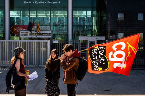 - Perpignan, Monday 20 March 2023, rally and blockade in front of a high school, examination center of the baccalaureate, specialties test, led by the professional unions CGT, SUD, CFDT, FSU and UNSA (...) as well as high school students who joined the blockade.