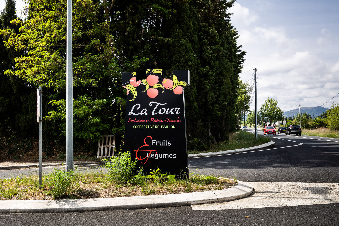 Millas, 7 juin 2023, dans le cadre de l'evolution de ses plantations pour faire face au changement climatique, à la sécheresse en cours dans les Pyrénées-Orientales et face à une arboriculture particulièrement touchée par la sharka, la coopérative La Tour, à Millas, pousse ses coopérateurs agriculteurs et arboriculteurs a essayer de nouvelles essences fruitières, comme le Kaki et la Mandarine.