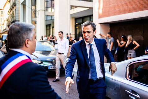 Perpignan, September 29, 2023, Mr. Olivier Véran, Minister Delegate for Democratic Renewal and Government Spokesman, visits the University of Perpignan to take part in a debate with law students.