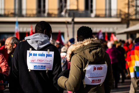 Perpignan, 21 janvier 2024, manifestation et rassemblement contre la loi asile et immigration du gouvernement, portée par Gerald Darmanin, a quelques jours de son analyse par le Conseil Constitutionnel.