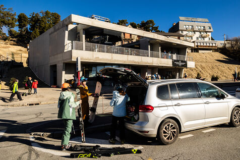 Cerdagne, Pyrénées-Orientales, 13 février 2024, au 2eme jour des vacances scolaire d'hiver 2024, les Pyrénées, comme la plupart des massifs montagneux français, manquent cruellement de neige. Malgré tout, les stations de ski, ouvertes, comptent sur l'afflux de touristes.
