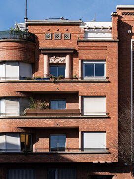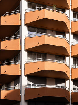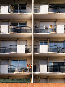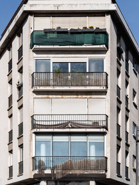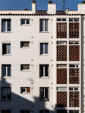 Perpignan, February 2025, medley of building facades in the city center of a small metropolis in the south of France.