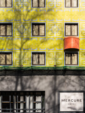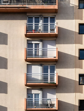 Perpignan, février 2025, medley d'image de façade d'immeuble du centre-ville d'une petite metropole du sud de la France.