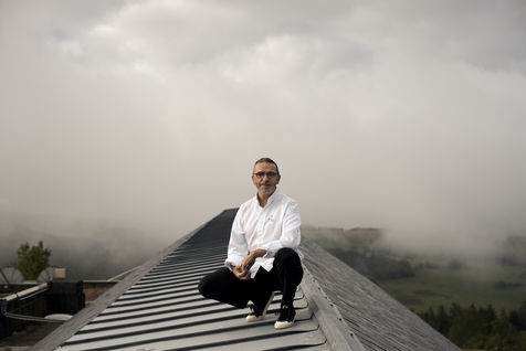 Dans les pas de Sébastien Bras sur la colline du Suquet, éponyme d?un fameux restaurant et sur le toit duquel nous prolongerons notre discussion.