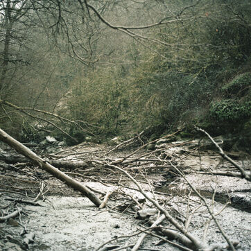Cross the garden and climb over a fence. Go down through the tall grass to the end of the meadow. Enter the woods. This is where “L’Aval” begins. A few short kilometers across the forest pierced with clearings, a non-existent path. Alternating gentle and steep slopes. There is an abandoned hamlet there: five collapsed houses that ivy conscientiously devours. Go down until you catch sight of the river. A dam. A few more bends before you stop walking. Steps as if you were counting down time with your feet. So I counted them. Little by little. Steps as a unit of measurement on a map. The water that goes downstream and never comes back and the slow movement of the wind in the trees, a continuous learning of places. An exploration. Step by step.