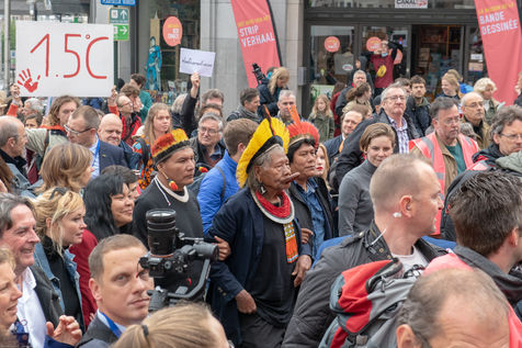 Pour mettre la pression sur le futur gouvernement, afin qu il a agisse concrètement en faveur de la justice climatique et la justice sociale, les jeunes belges descendent dans les rues depuis cinq mois consécutifs. Leur 18 ème manifestation de ce 17 mai 2019 a été marquée par la présence l infatigable militant indigène brésilien, le