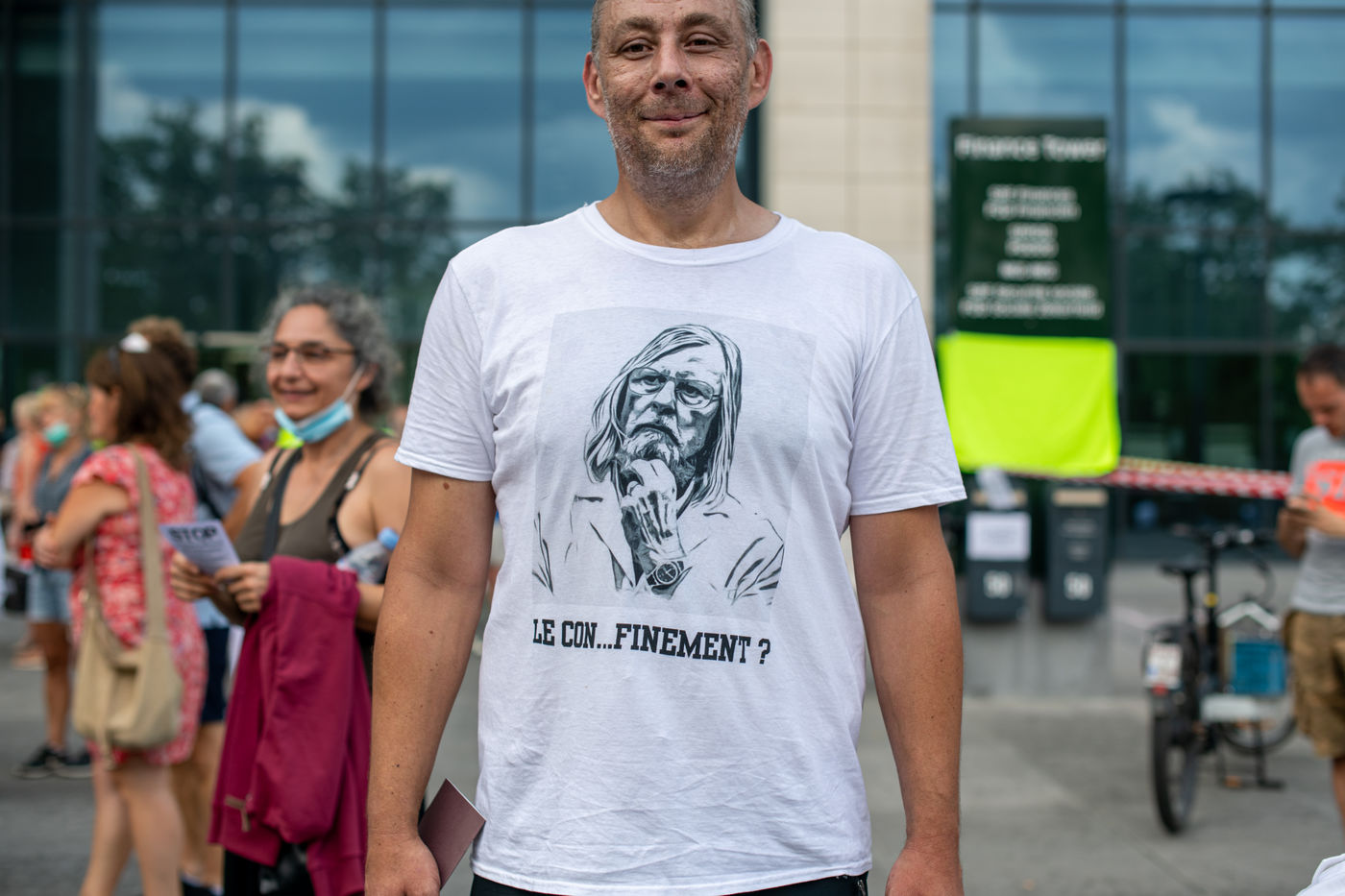 La Tour des Finances a ete choisi comme lieu du rassemblement pour sa portee symbolique.
