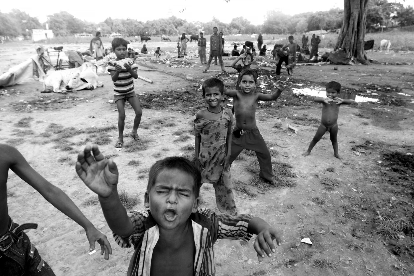 L'enfance est le monde de l'innocence par excellence. L'expression de la joie de vivre se lit parfois sur les visages au travers de plaisirs simples, et fait aussi bien partie de la vie que le désespoir et la tristesse engendrés par de pénibles situations. Certains vont même à l?école et s?accordent des temps de jeu avant de reprendre le labeur quotidien : Vivre et Survivre.