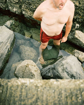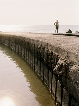 There is a beach of artificial swimming pools in Soulac, in the Médoc. Concrete constructions over fifty years old allow water to enter within them depending on the height of the tides. Beachgoers come to swim in the ocean without the risk of the waves and the moods of the tides. Others come there to fish for shrimps or crabs which come to nest among the rocks. Beachgoers then meet flaneurs and fishermen meet sunbathers.