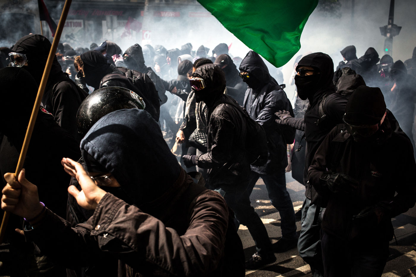 30 000 à 80 000 personnes ont manifesté de la place de la République à la place de la Nation, le lundi 1er mai 2017 à Paris. De nombreux affrontements ont éclaté entre le cortège de tête et les forces de l'ordre, provoquant de nombreux blessés notamment par des tires de flash-balls et des lancés de cocktail molotov.