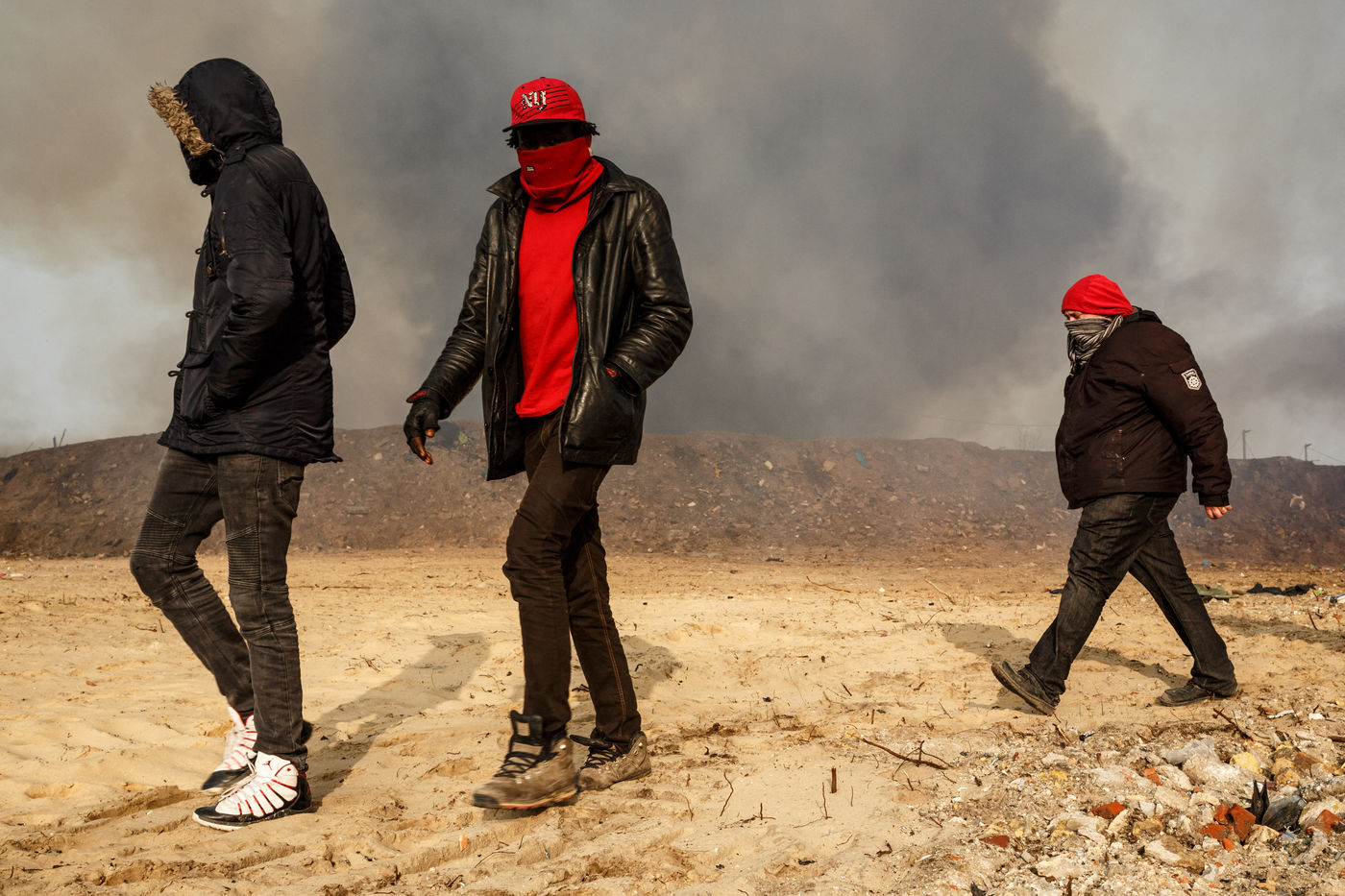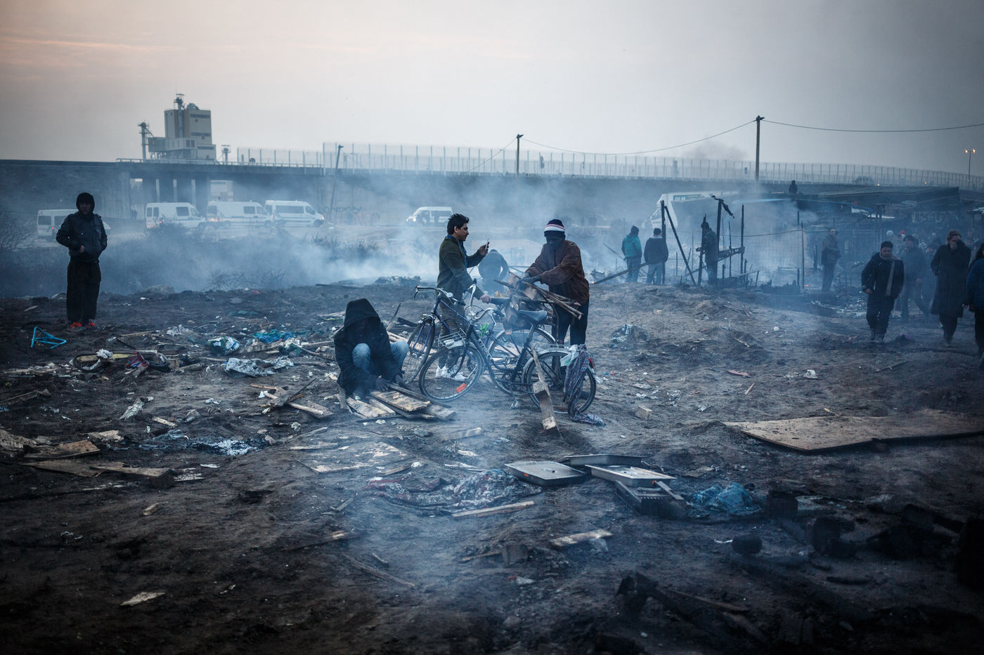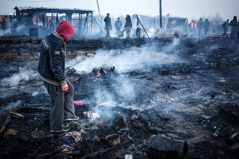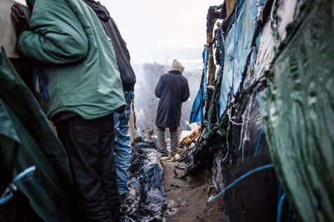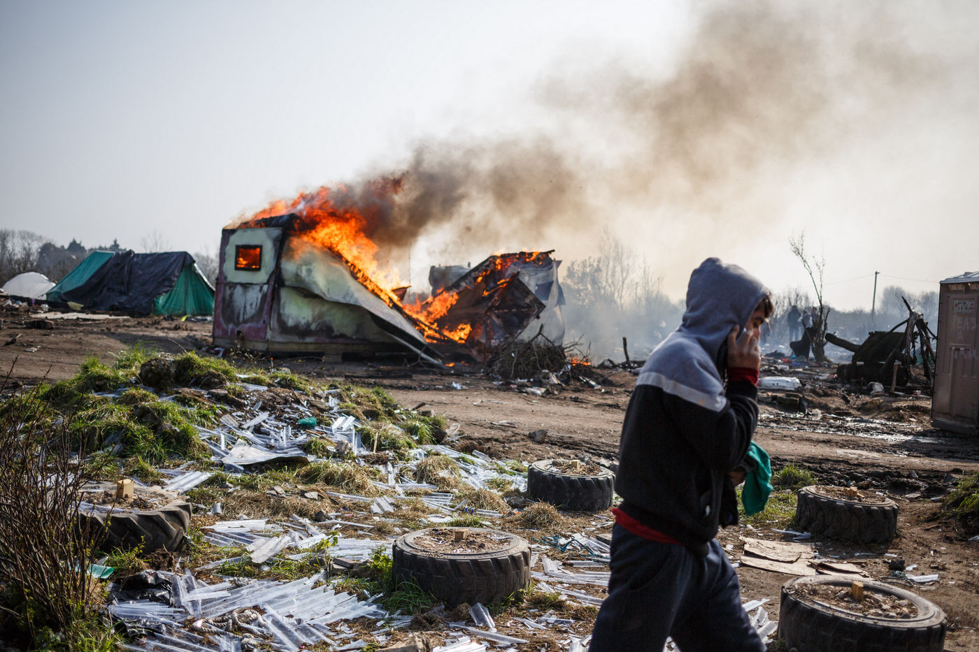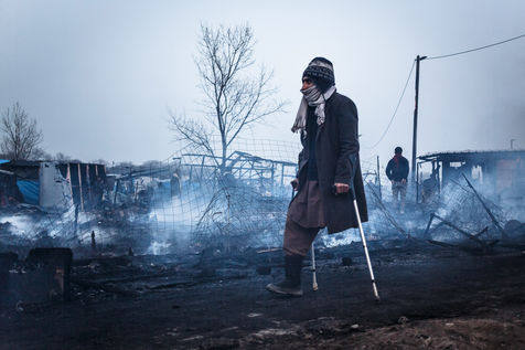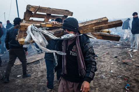 March 2016 - Dismantling the Calais jungle, the largest slum in Europe. Refugees leave their homes in the Calais jungle before they are destroyed by the authorities or the flames.