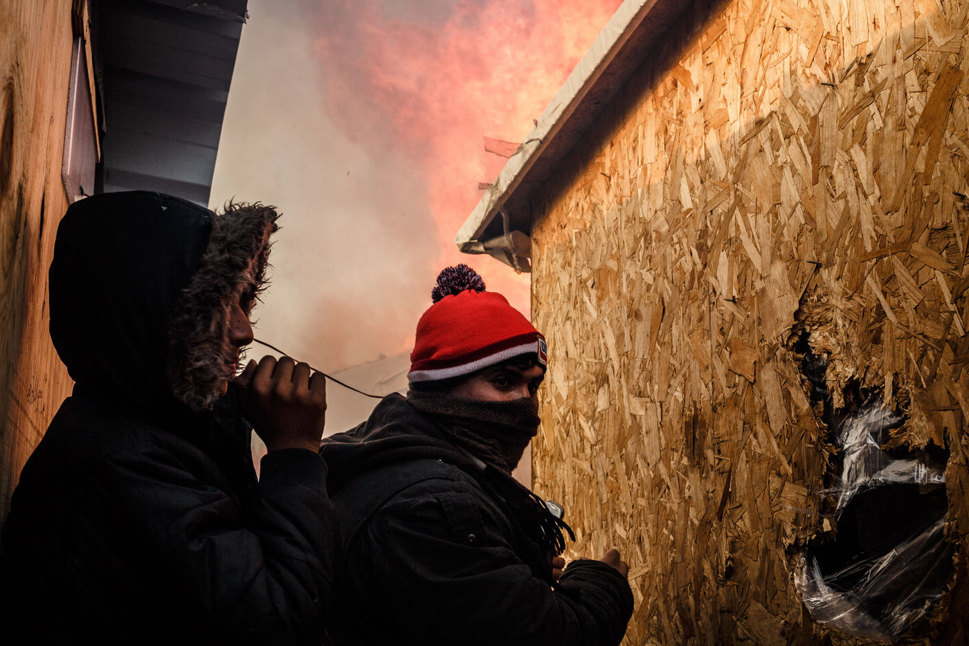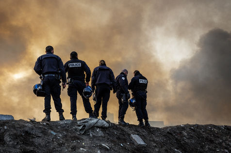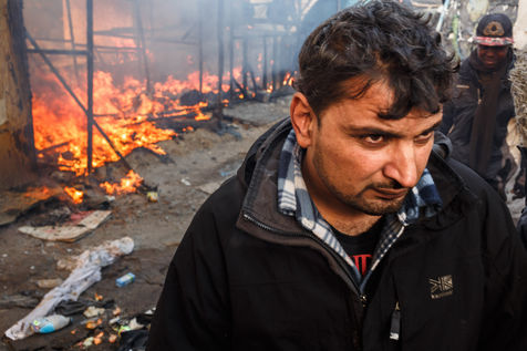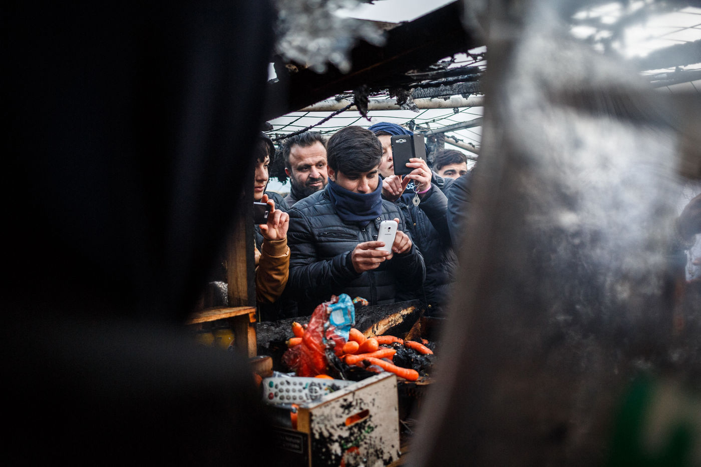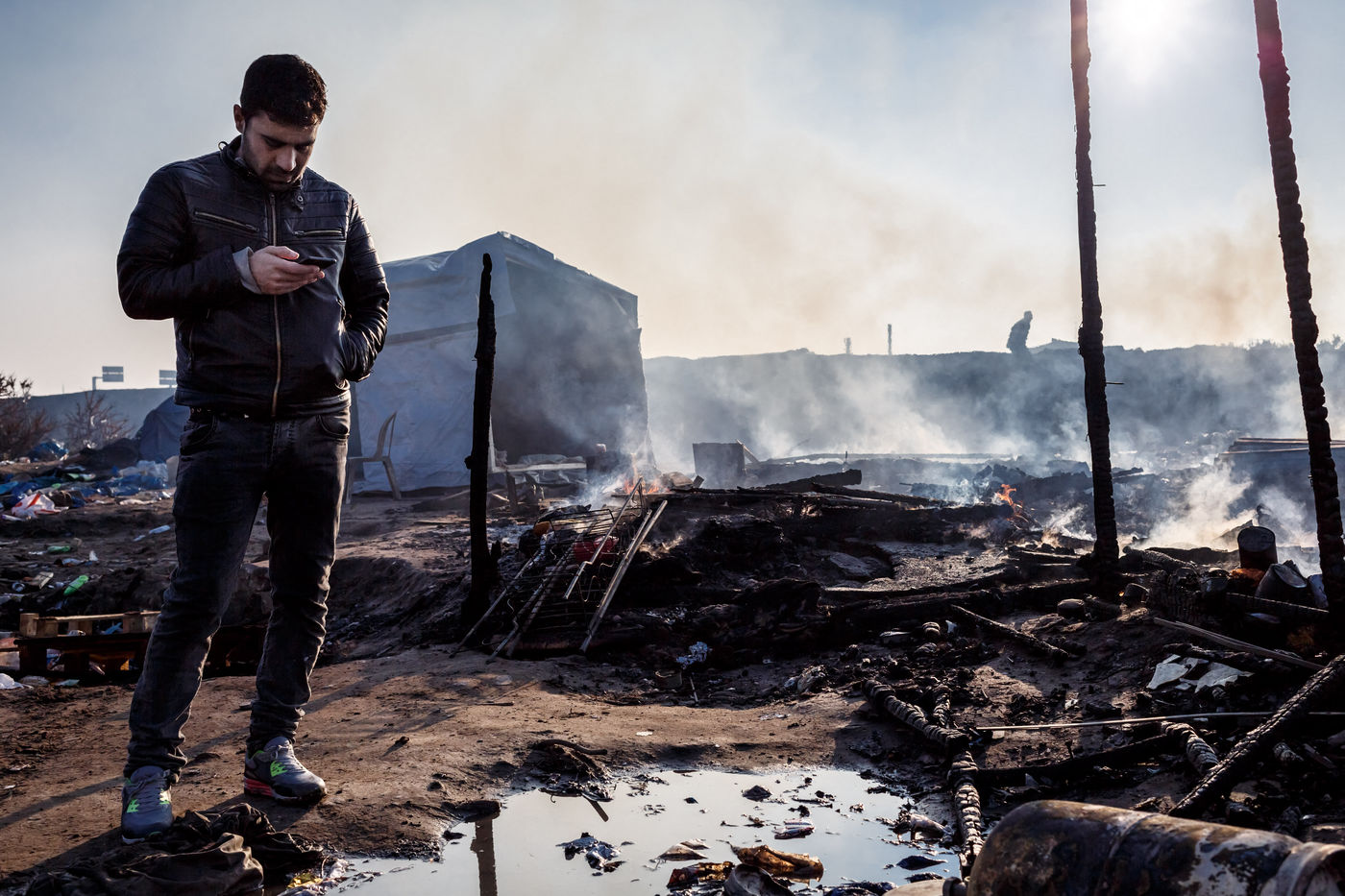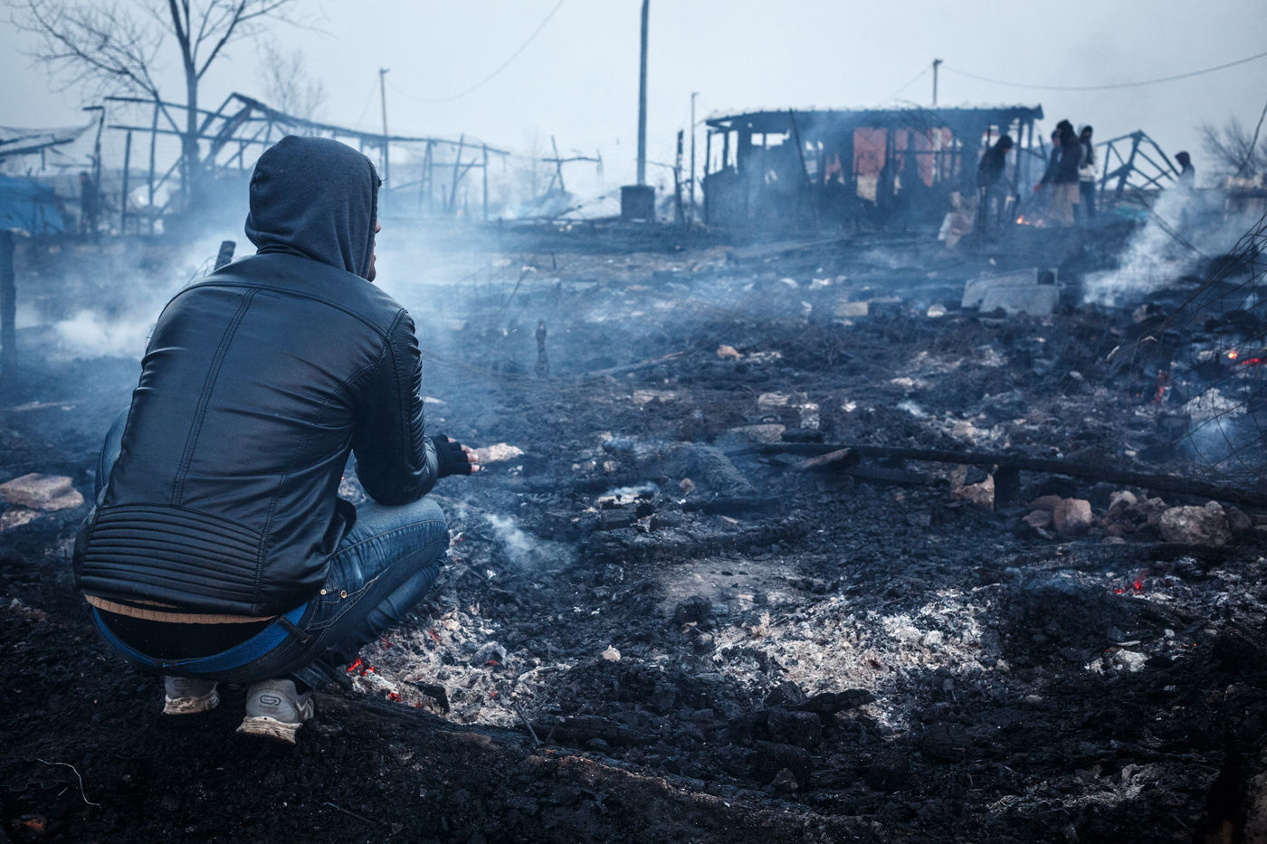 March 2016 - Dismantling the Calais jungle, the largest slum in Europe. Refugees leave their homes in the Calais jungle before they are destroyed by the authorities or the flames.