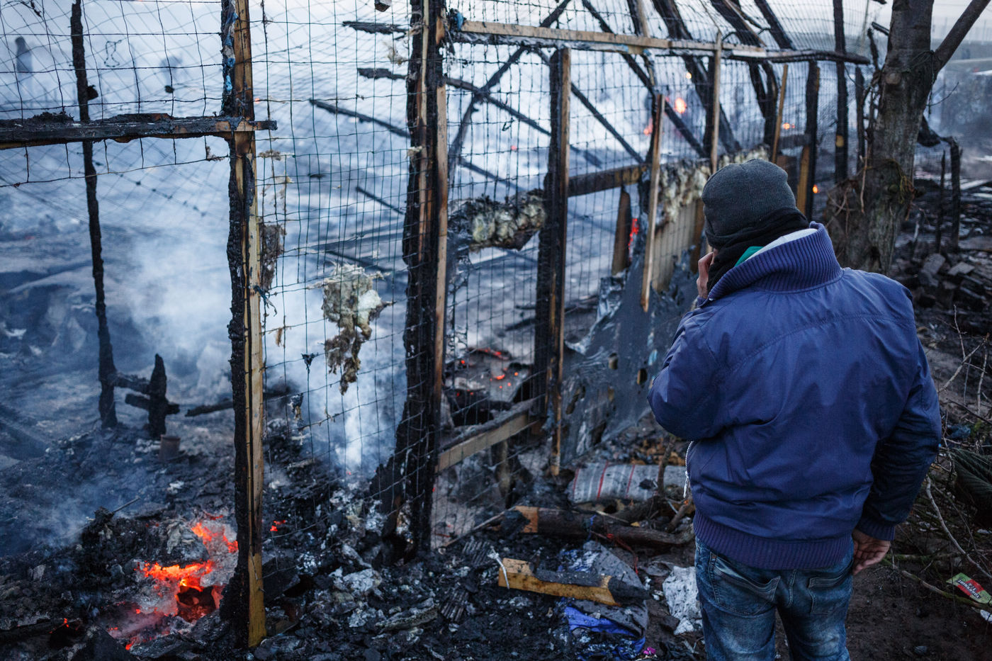 Le démantèlement et la destruction de la zone sud par les flammes ne va pas décourager ces migrants mais les faire se déplacer plus au nord du camp où il vont reconstruire leurs abris et essayer de recréer un semblant de vie.