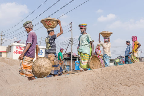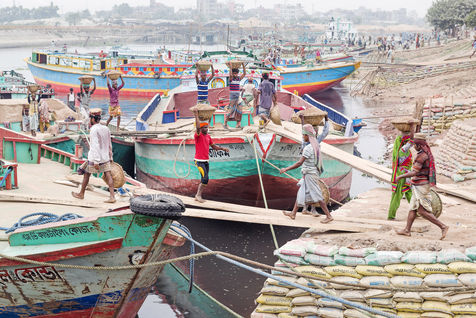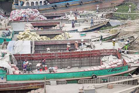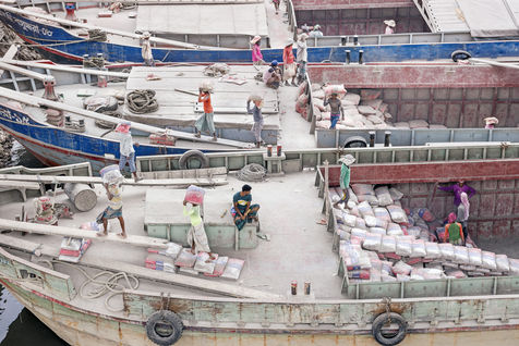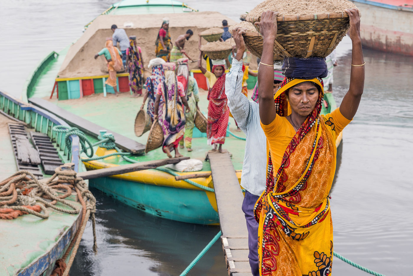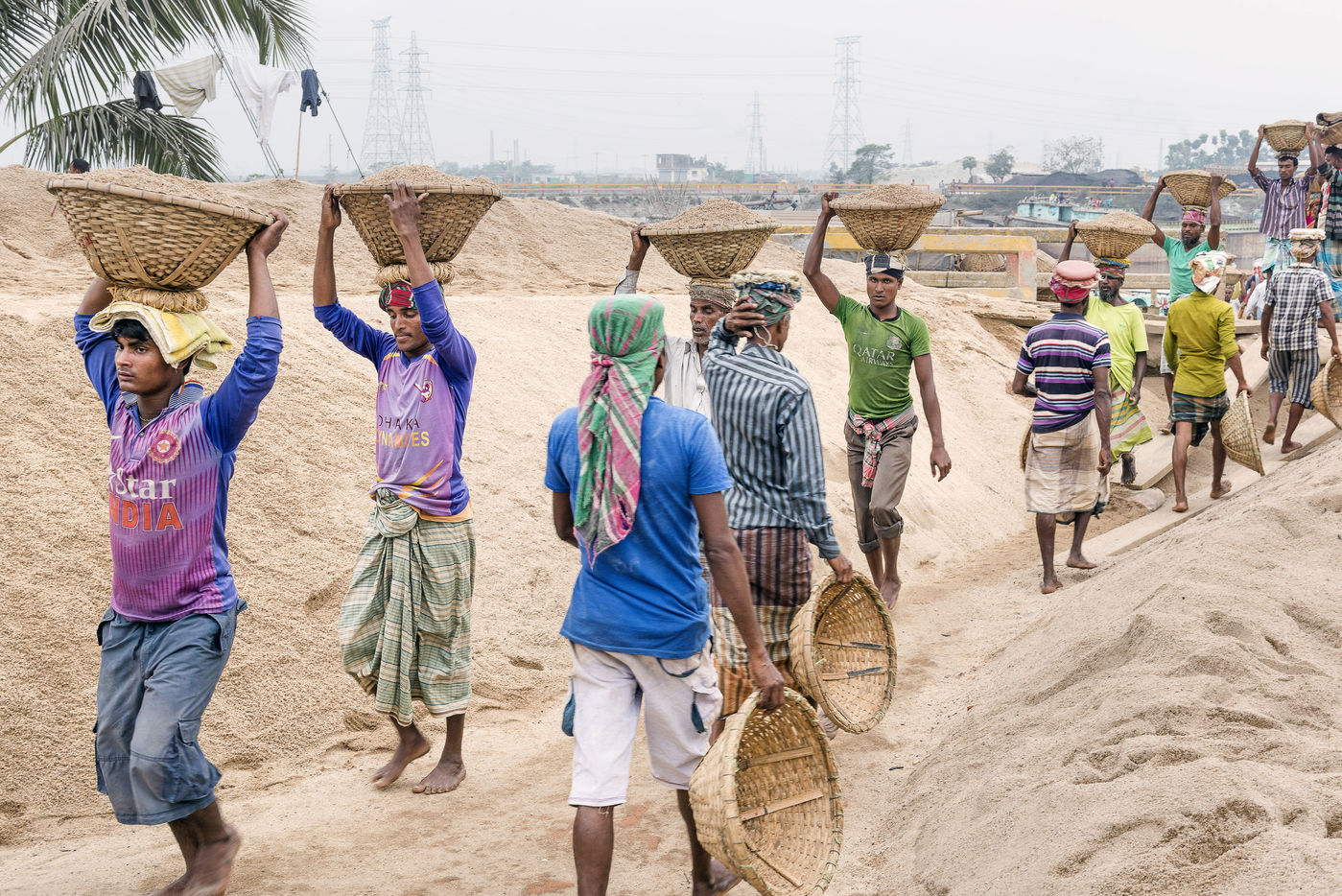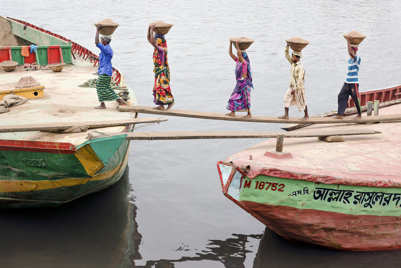 In the port of Gabtoli, on the outskirts of Dhaka, thousands of day labourers rip mountains of sand, gravel, cement, bricks and coal from the bellies of boats.
