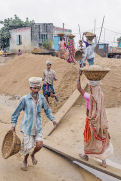 Matériaux qui seront aussitôt engloutis par l'appétit insatiable de la ville. Vu de loin, le site ressemble à une fourmilière. Paniers pleins et paniers vides se croisent en un ballet incessant.