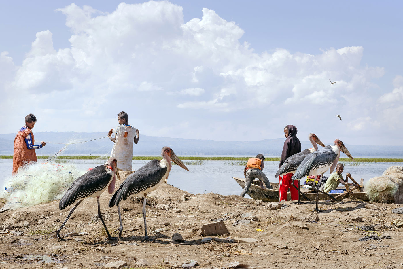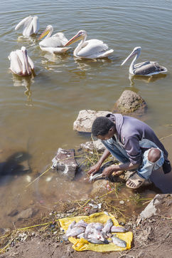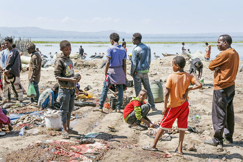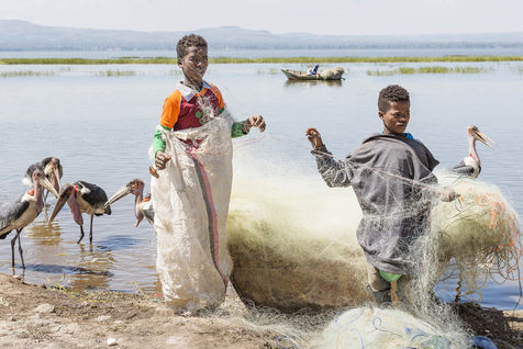 Lake Awassa in Ethiopia is part of this chain of lakes. Its waters full of fish provide a livelihood for many fishermen, including many children, who work as soon as the sun rises.