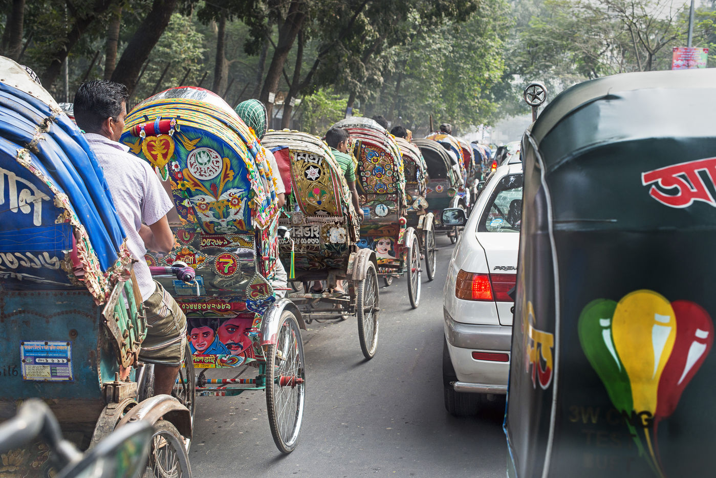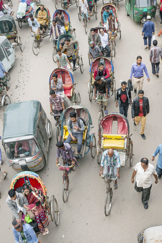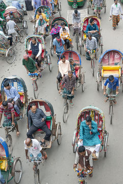 La seule ville de Dacca, capitale du Bangladesh, compterait plus de 500 000 conducteurs de rickshaws.