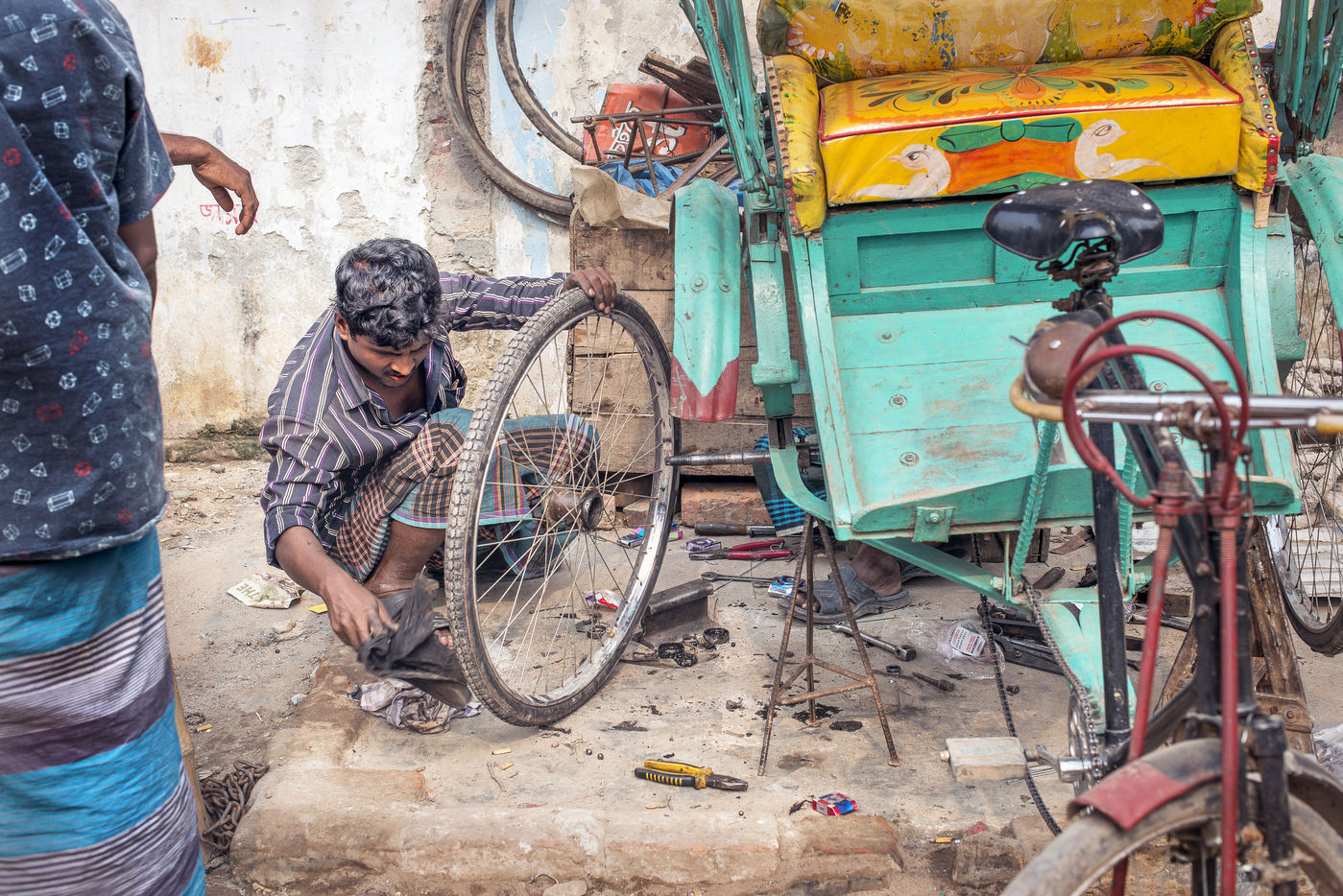 This back-breaking work is most often done for rickshaw owners employing a large workforce and often without professional trainings.