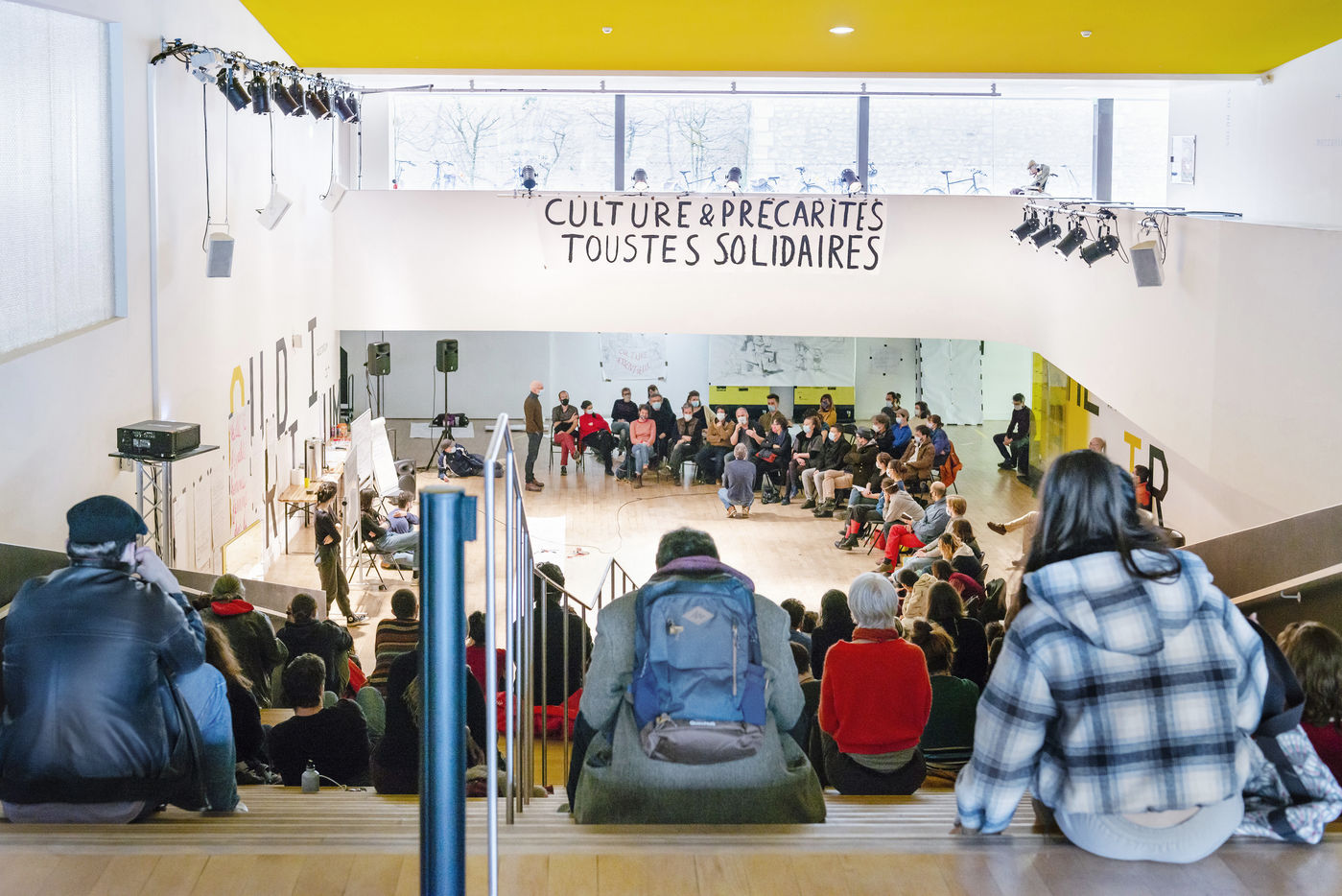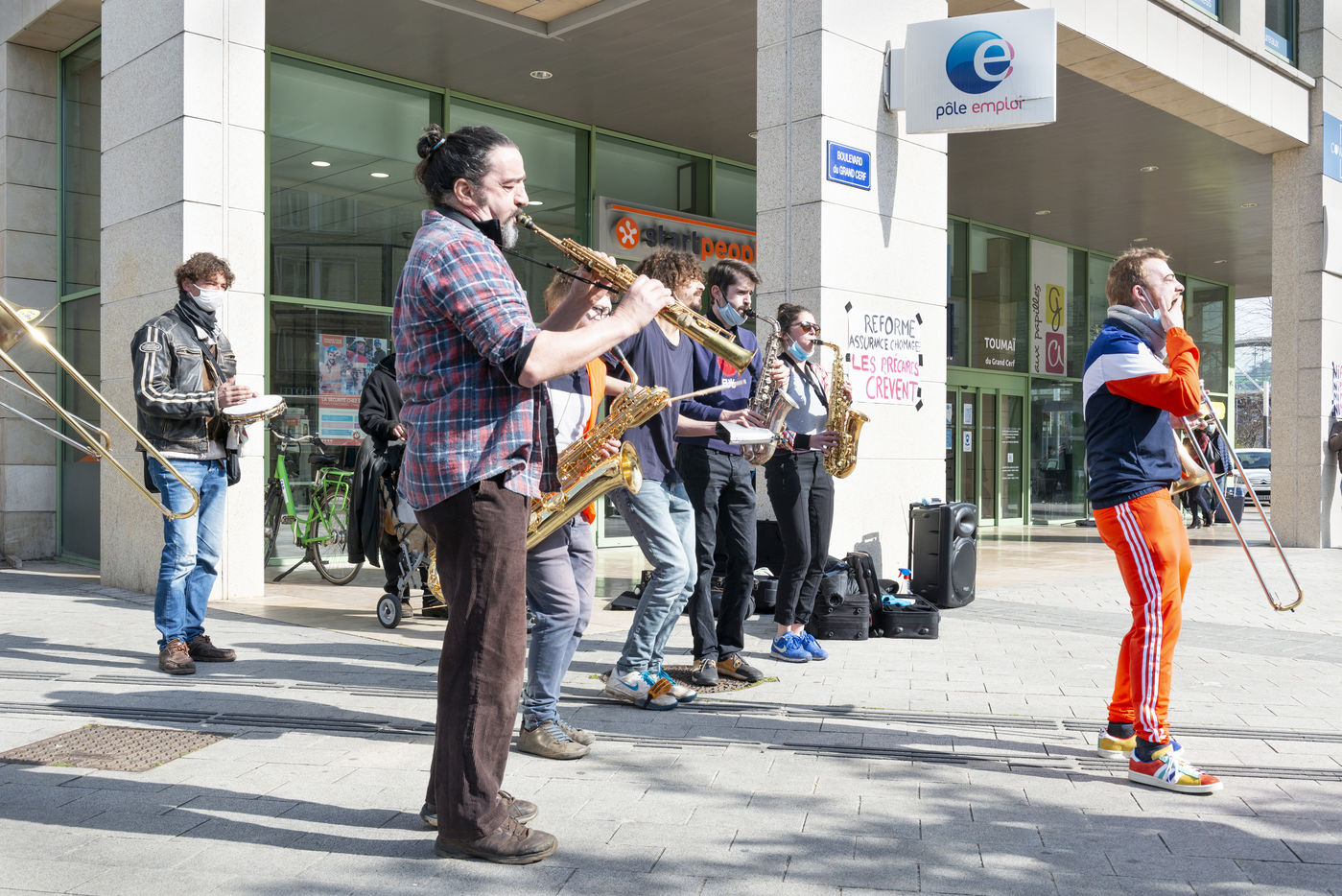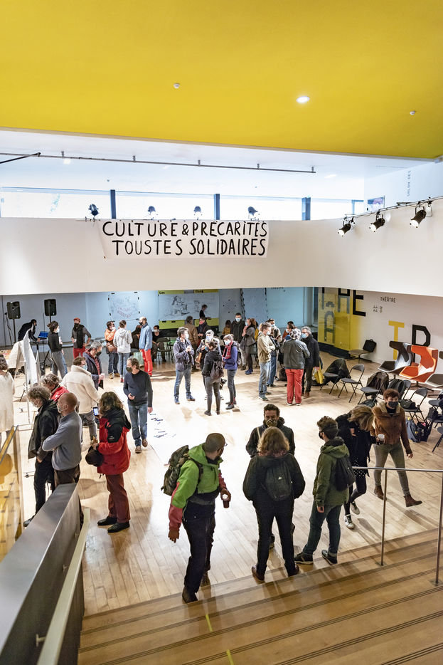 In Poitiers as elsewhere, artists, entertainment workers and citizens are mobilizing around the Poitiers Auditorium Theatre (TAP) to denounce precariousness, the reform of the unemployment insurance, to demand the opening of social rights from 18 years old and finally the reopening of cultural places.