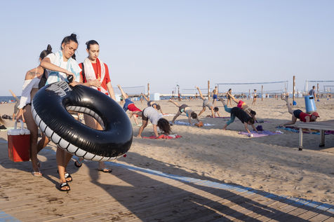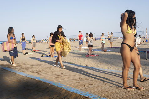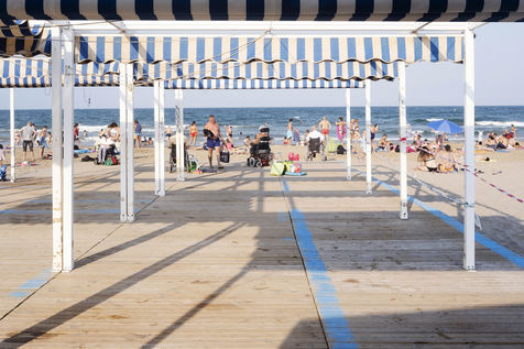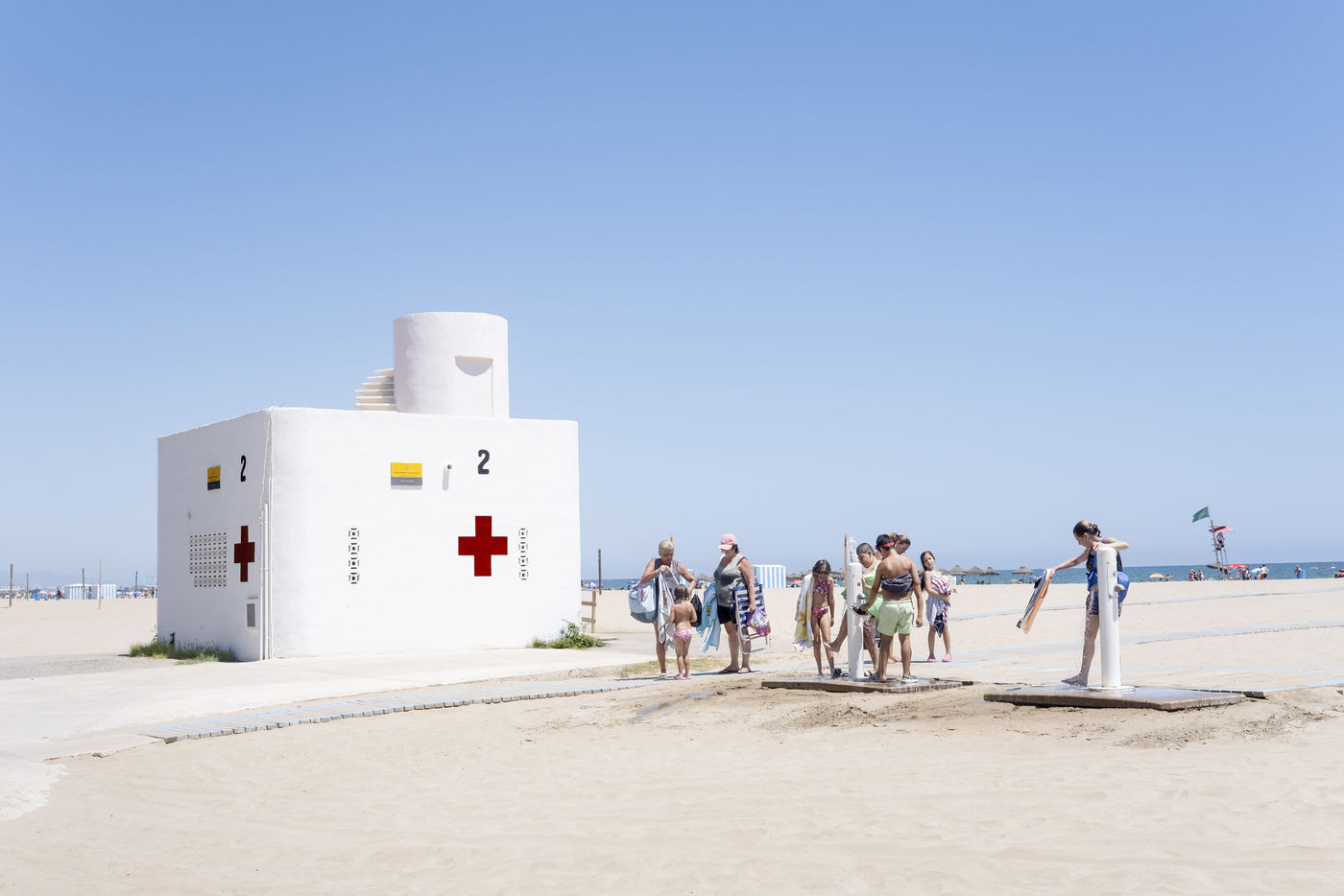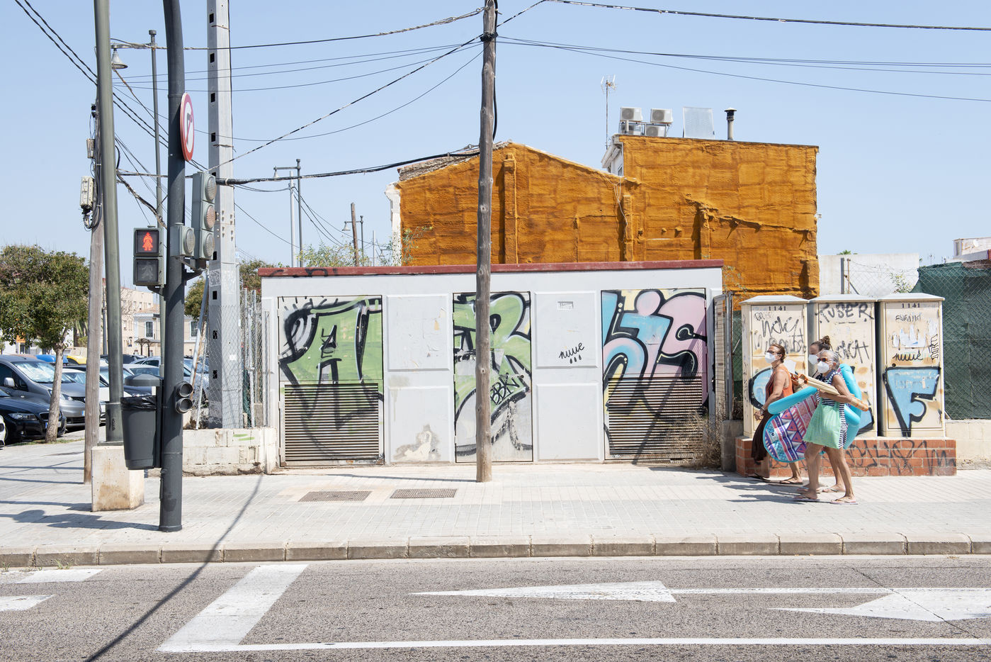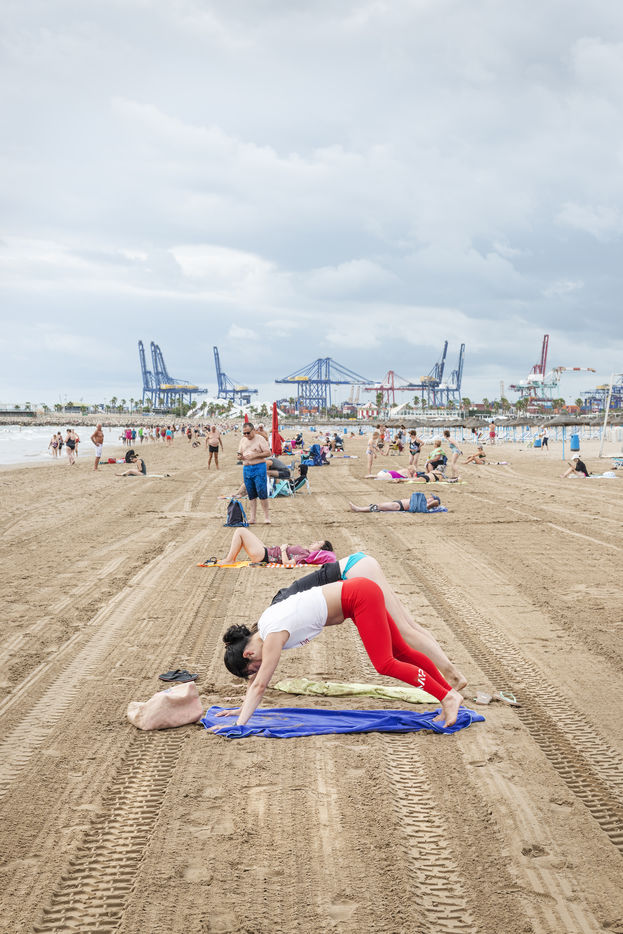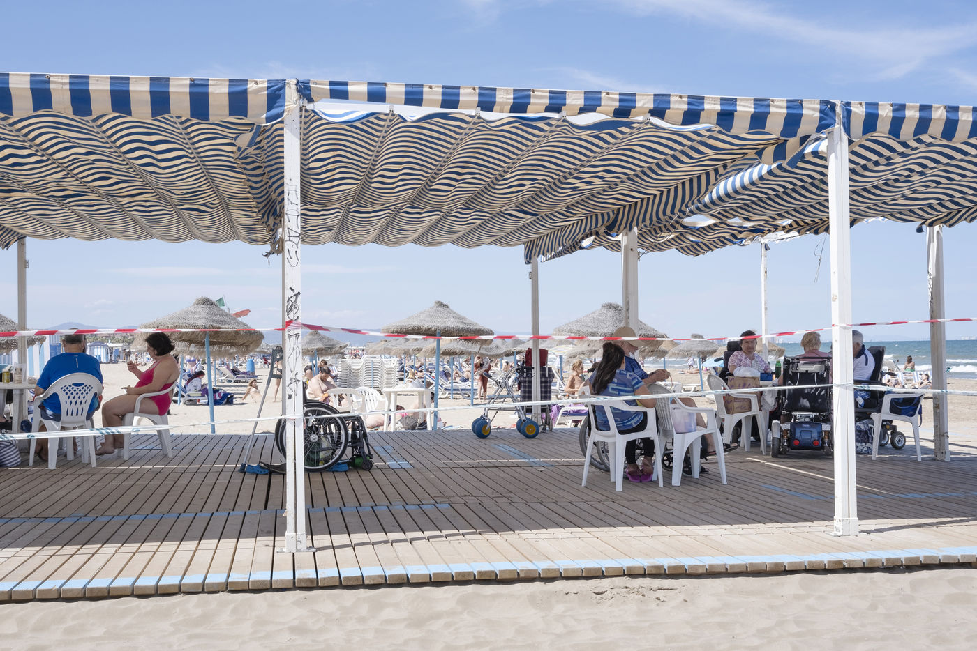Illustration of the great beach of Valencia in Spain. Despite the new acceleration of covid 19 contaminations and the complications related to the health pass, many foreign holidaymakers came to enjoy their vacations.