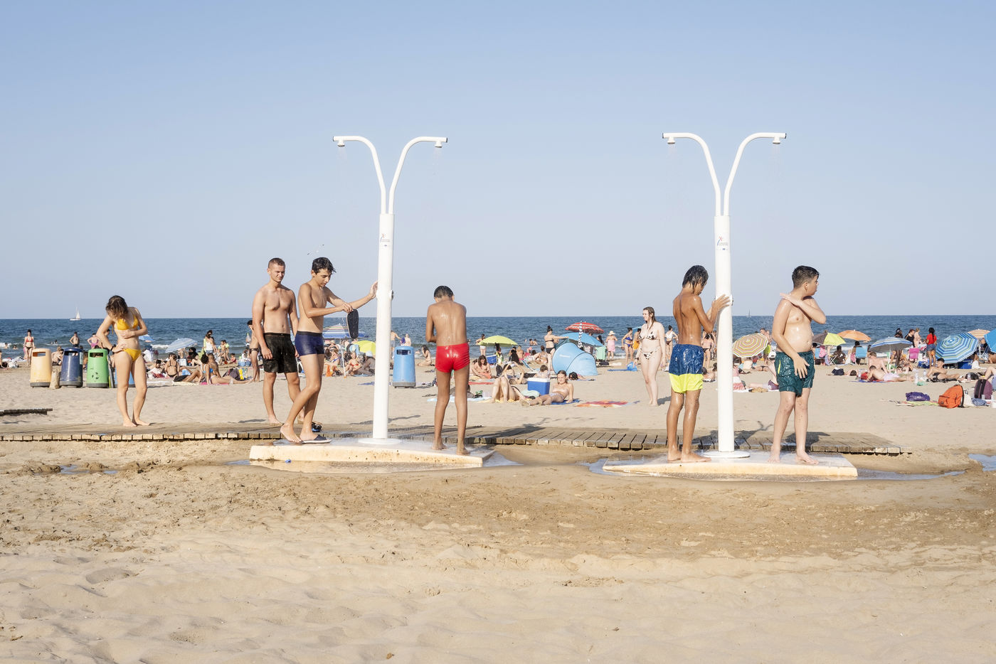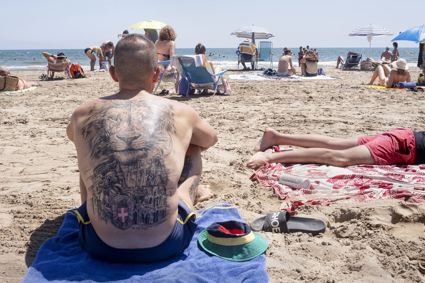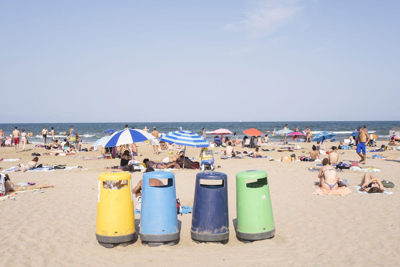 Images d'illustartion de la grande plage de Valence en Espagne. Malgré la nouvelle accélération des contaminations au covid 19 et les complications liées au pass sanitaire, de nombreux vacanciers étrangers sont venus profiter de leurs vacances.