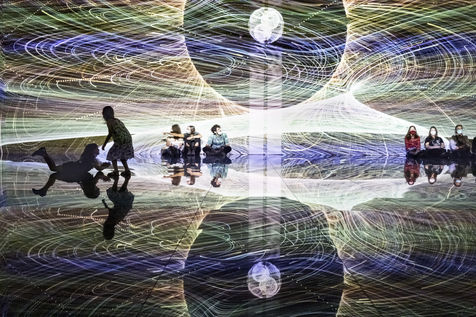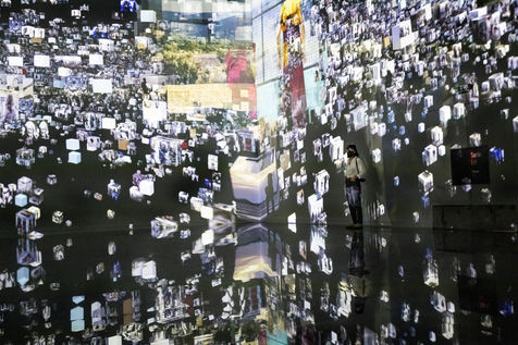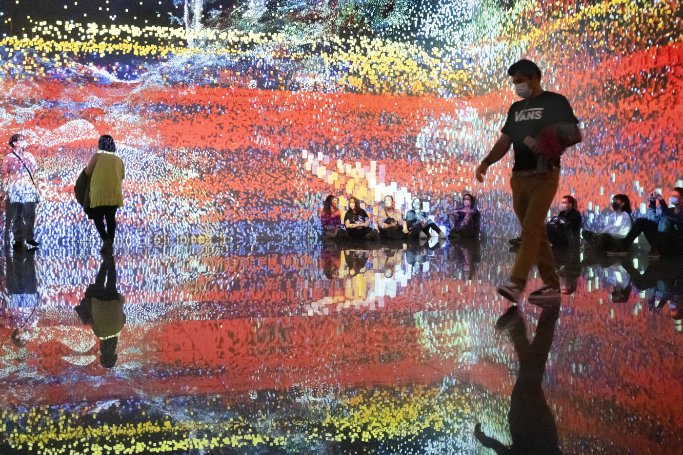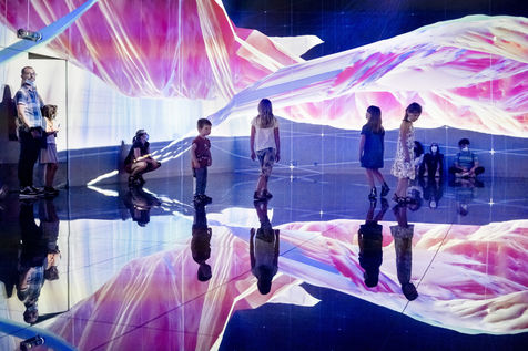 These creations are projected on all the walls of a room called The Cube because of its shape. Visitors who enter the room find themselves immersed in the heart of the creation.