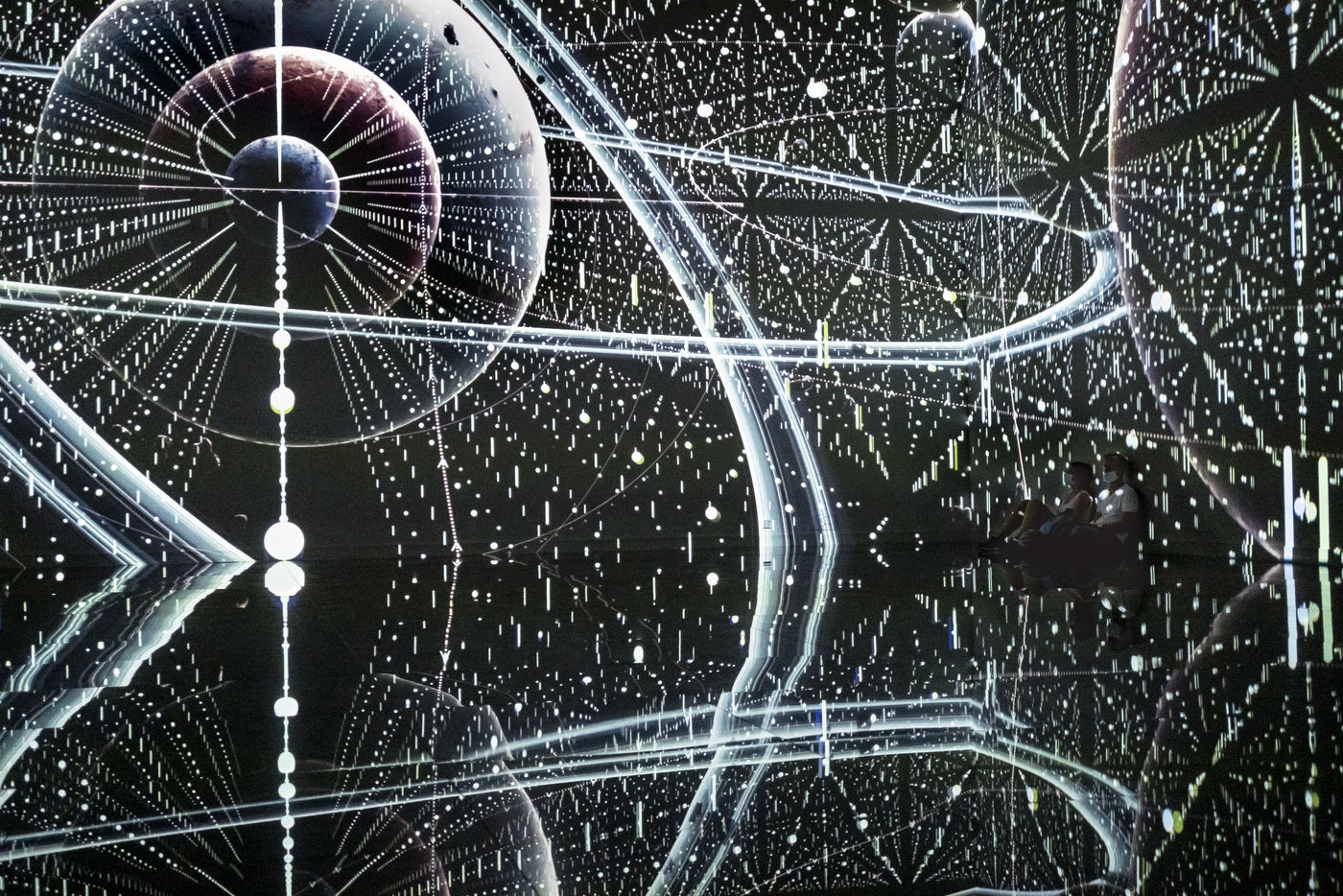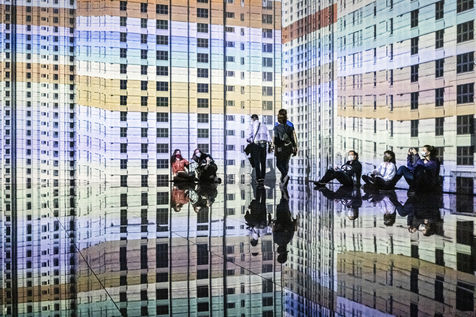 Ces création sont projetées sur toutes les parois d'une salle appelée Le Cube en raison de sa forme. Les visiteurs qui y pénètrent se retrouvent immergés au coeur de la création.