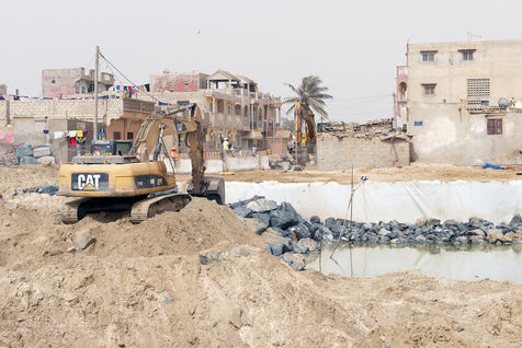 A dyke made of rocks is being built to protect the Lange de Barbarie and its neighbourhoods. It is financed by the French Development Agency, 60% in the form of a loan and the remaining 40% in the form of donations.