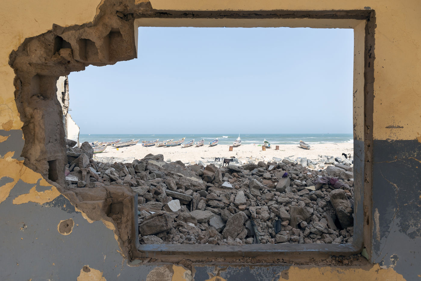The neighbourhoods of Saint Louis and Guet Ndar, which are located on the Langue de Barbarie, are home to more than thirty thousand people, mostly fishermen and their families. Facing the ocean, many of their houses were destroyed during the recent storms, and they have lost everything. They have to rehouse themselves at their own expense, be accommodated somewhere by their families or go to the emergency camps made available to them by the authorities with the support of NGOs.