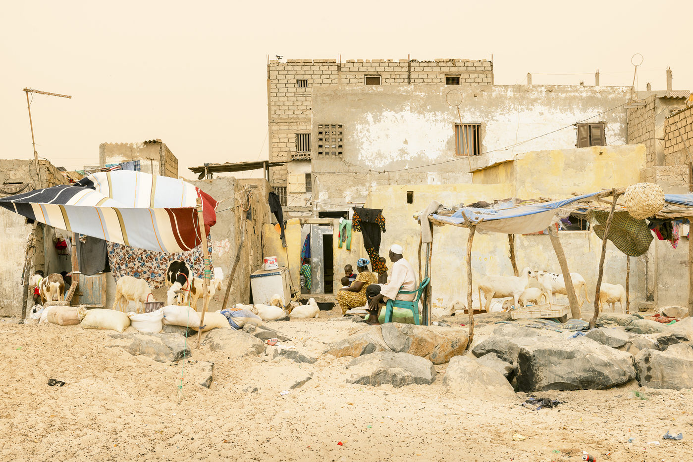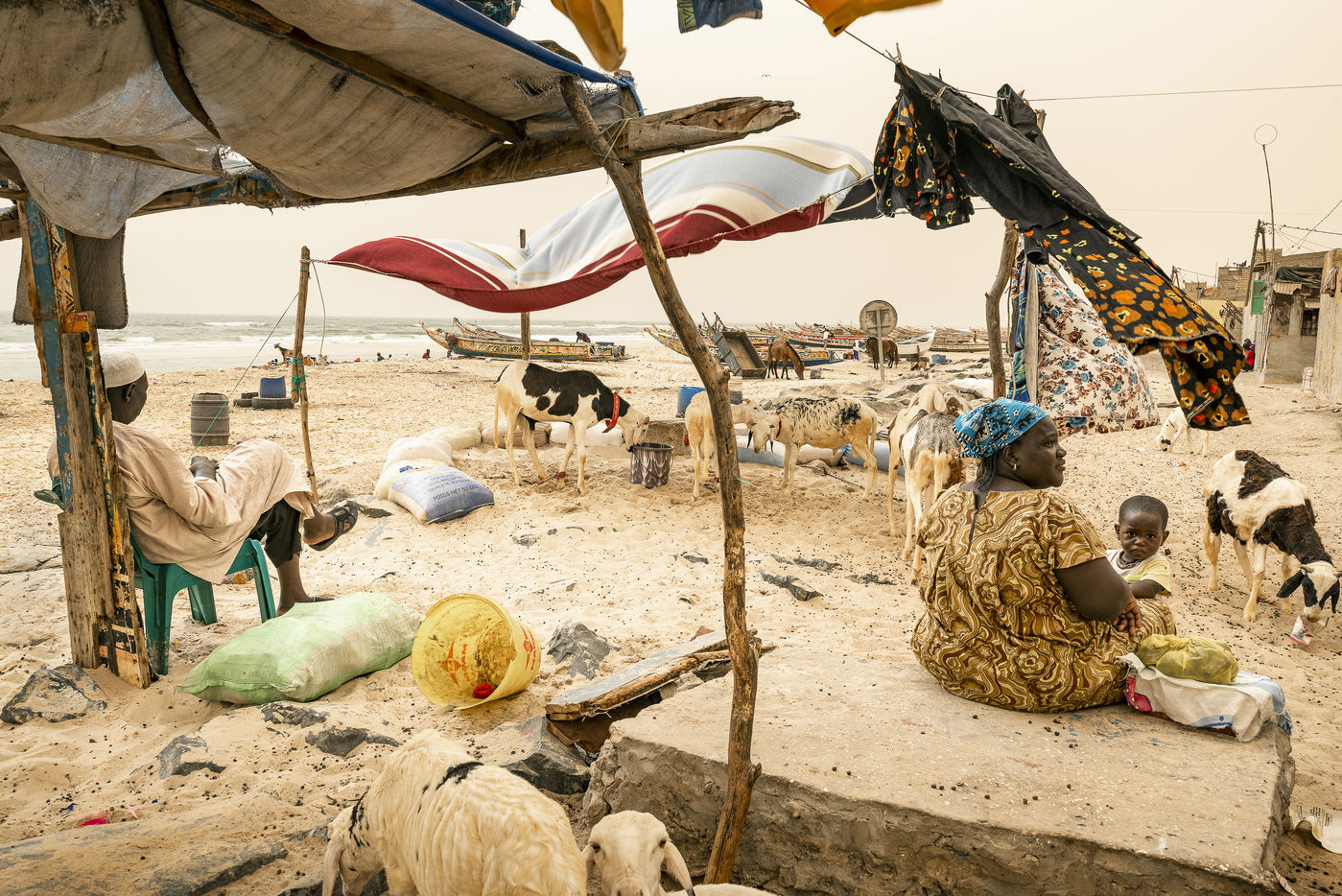 Les quartiers de Saint Louis comme celui de Guet Ndar qui se situent sur la Langue de Barbarie abritent plus de trente mille personnes, des pêcheurs et leurs familles pour la plupart. Face à l'océan, bon nombre de leurs maisons ont été détruites lors des récentes tempêtes, ceux là ont tout perdu, ils doivent se reloger à leurs frais, se faire héberger quelque part par leurs familles ou se rendre dans des camps d'urgence mis à leur disposition par les autorités avec le soutien d'ONG.