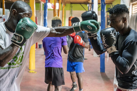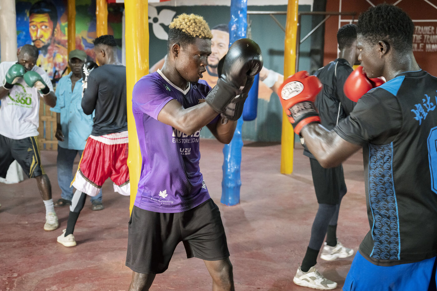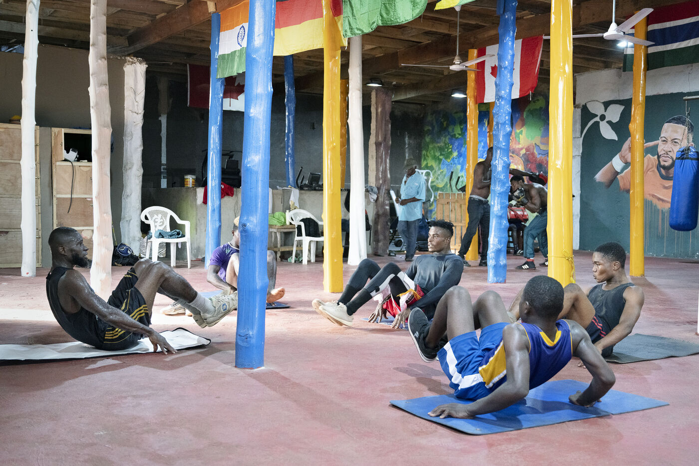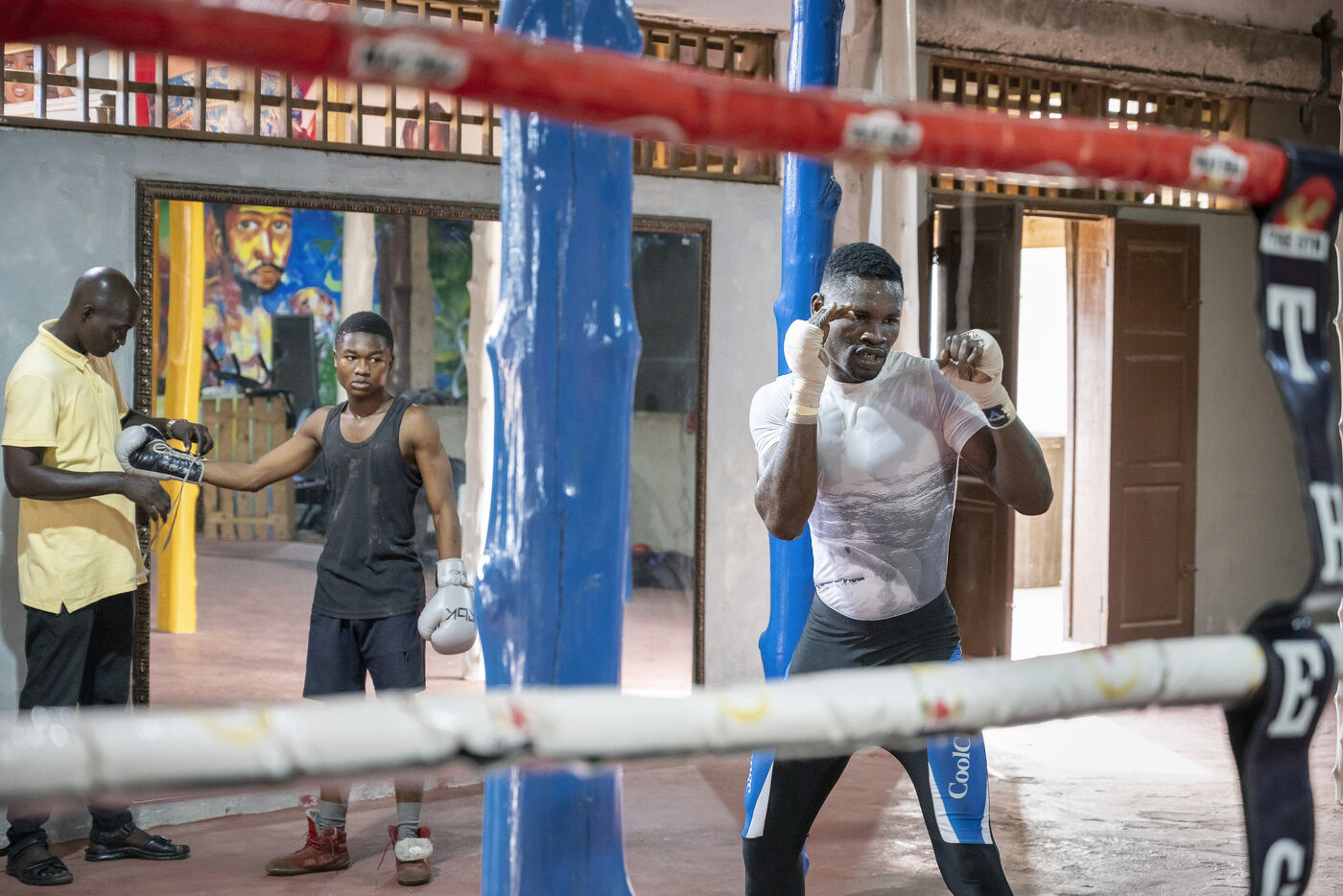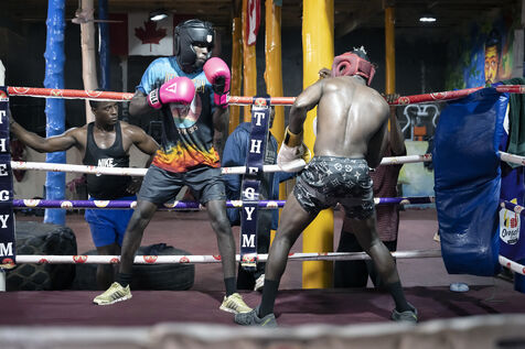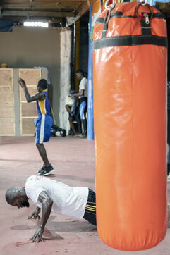 Illustrations de boxeurs à l'entrainement dans une salle de la capitale ghanéenne.