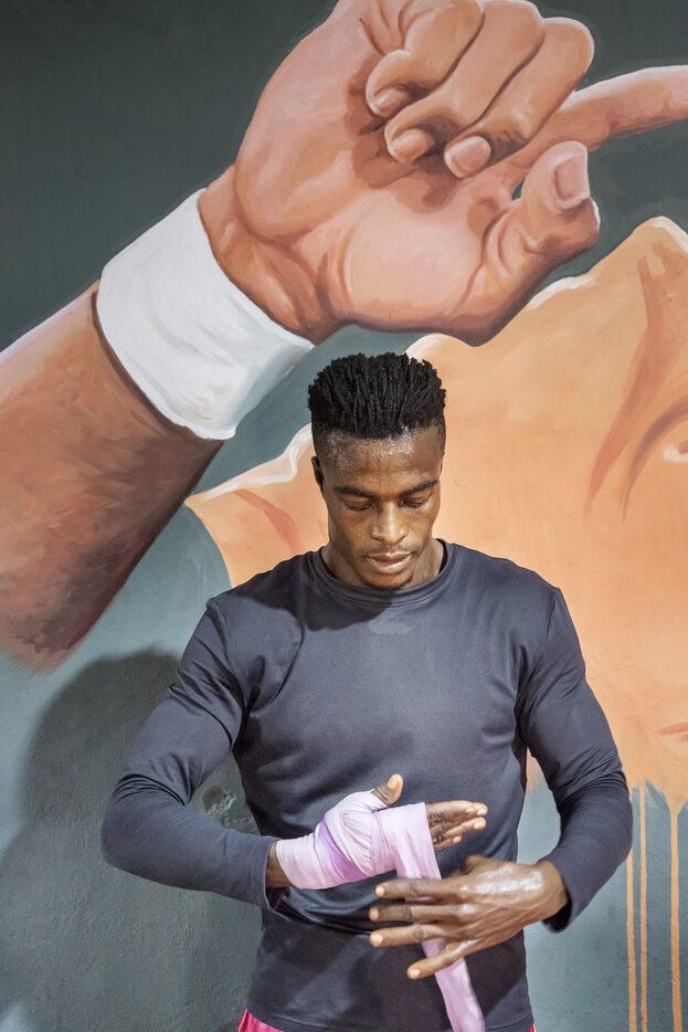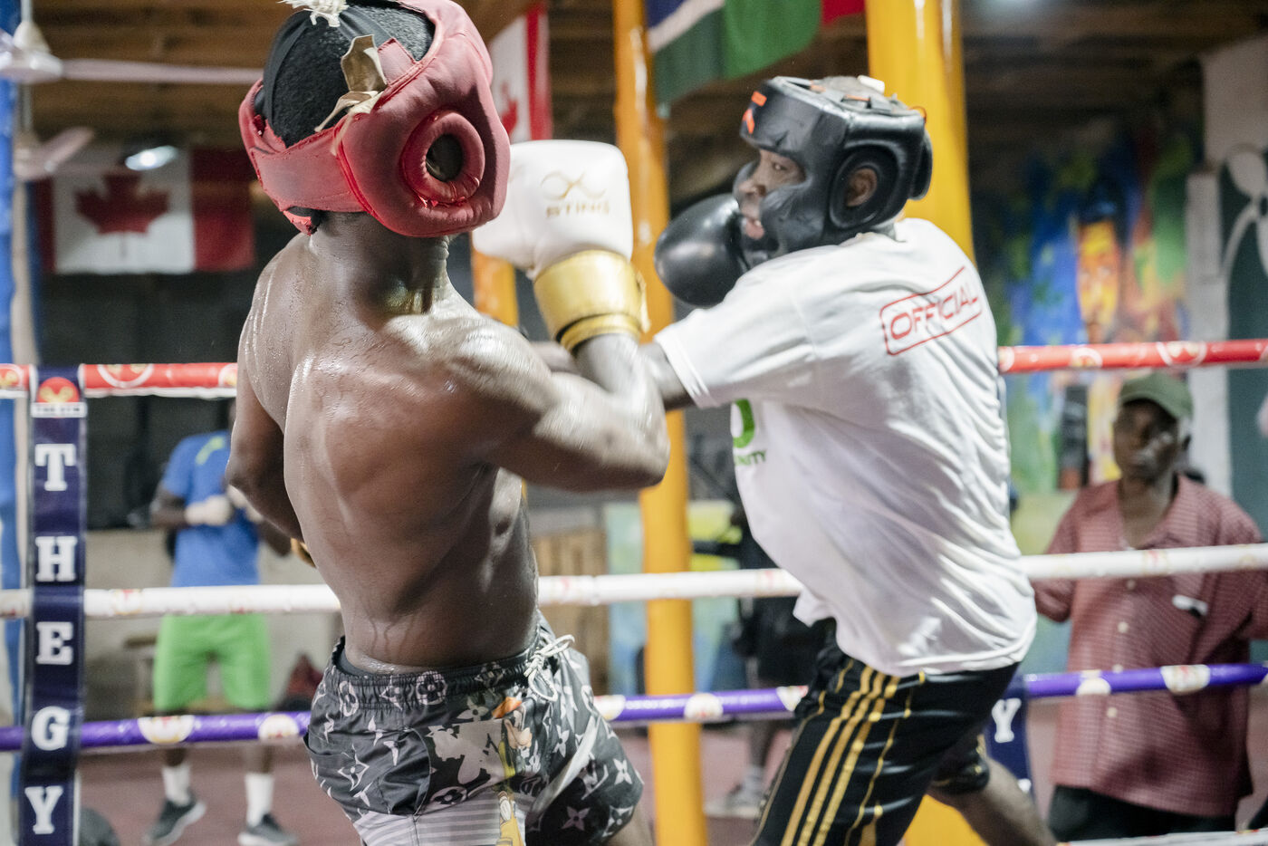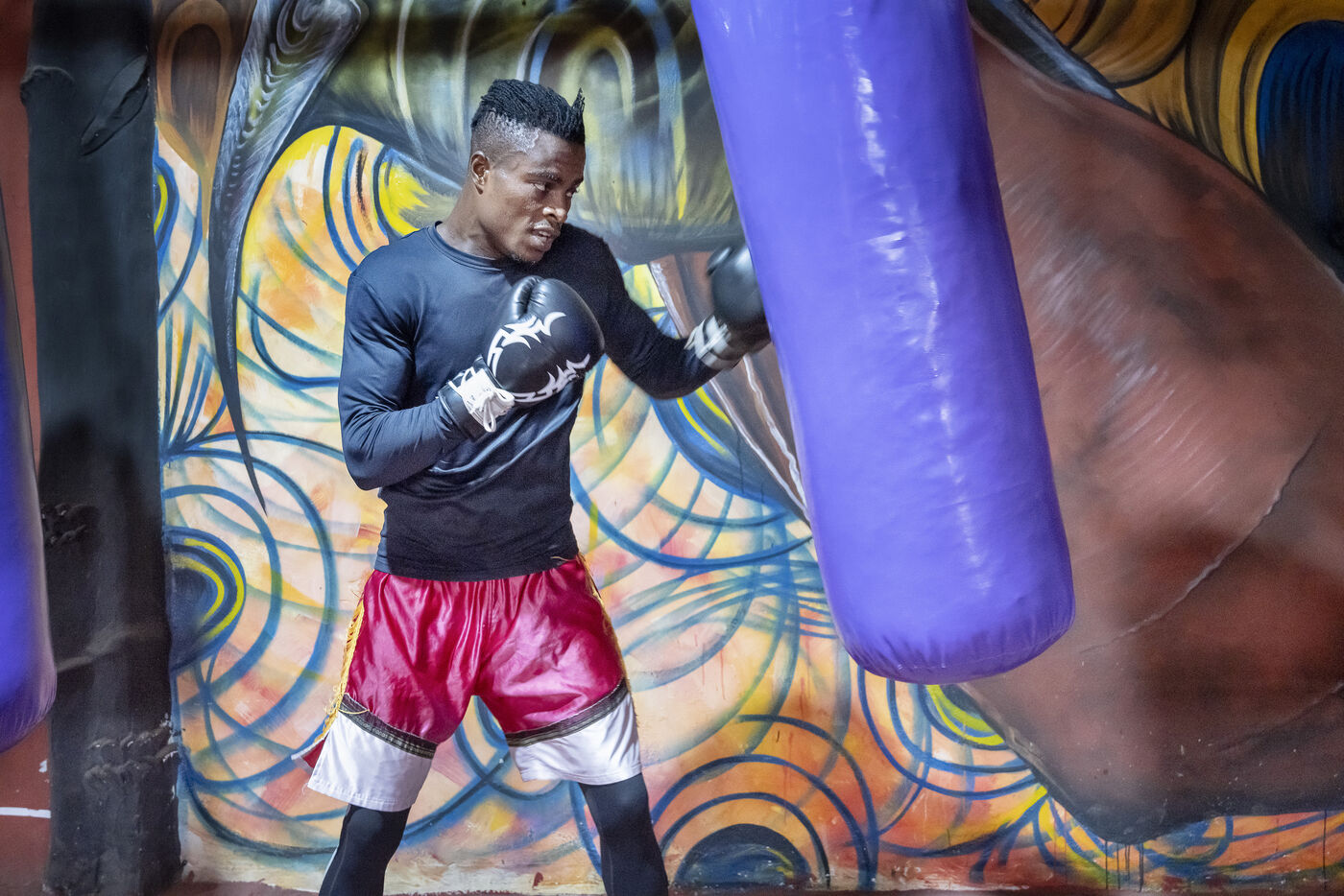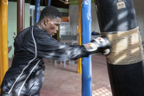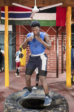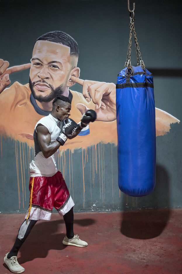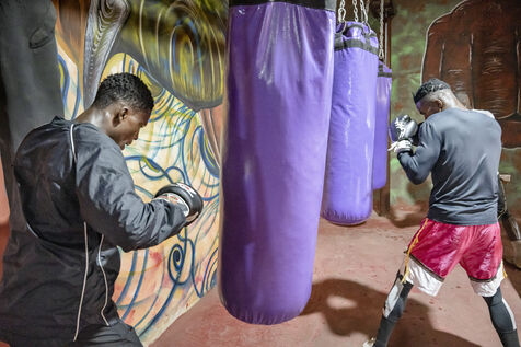Illustrations de boxeurs à l'entrainement dans une salle de la capitale ghanéenne.