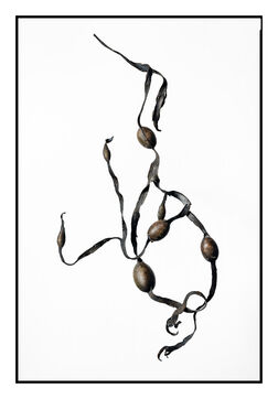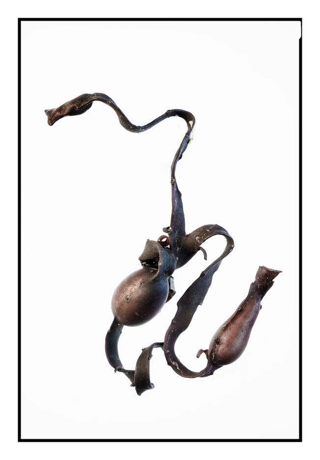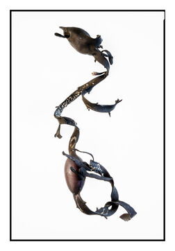 Portraits de débris d'algues échouées sur la grève au bord de l'océan, leurs formes à la fois sophistiquées et simples évoquent les plus belles calligraphies, un étrange alphabet.