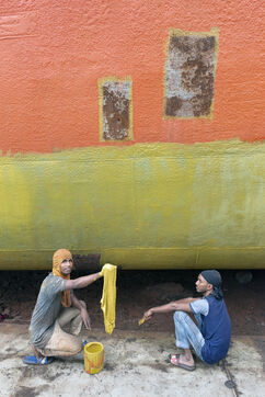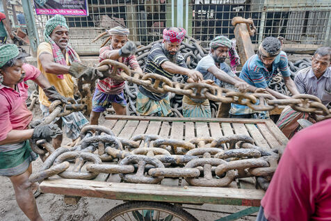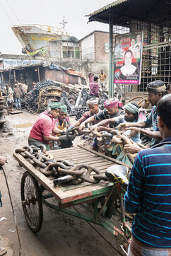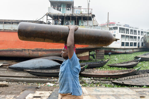 The country's abundant and cheap labor force means that work here is essentially manual. The workers, often day laborers, are exposed to all kinds of injuries, breathe toxic dust and fumes, and carry heavy loads.