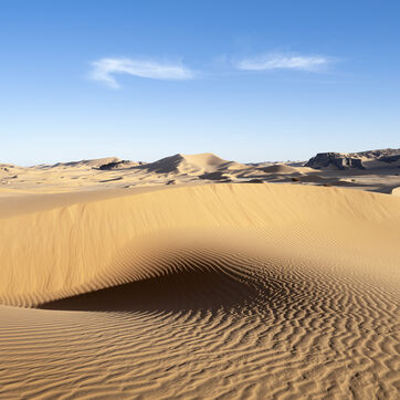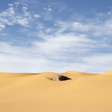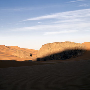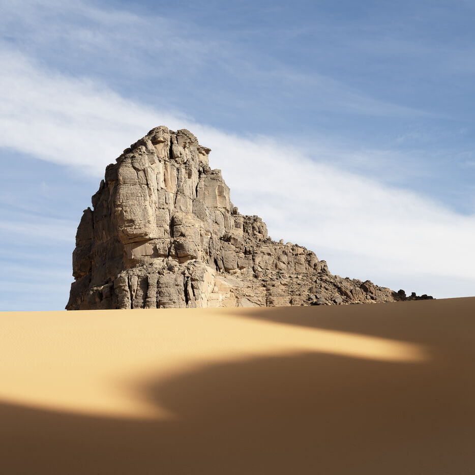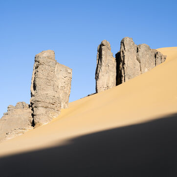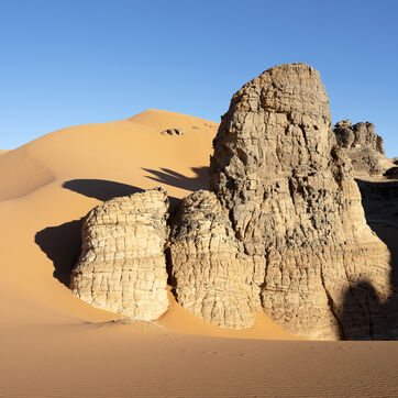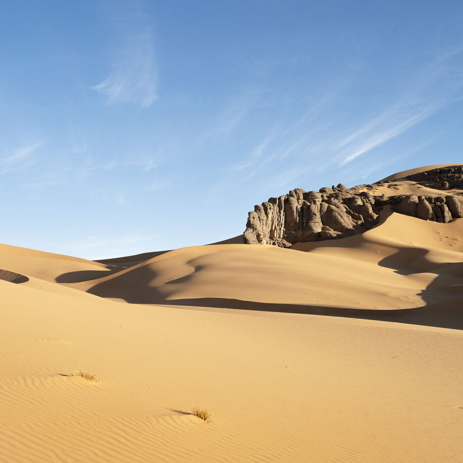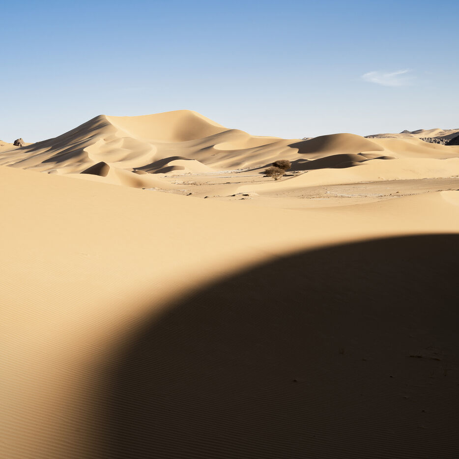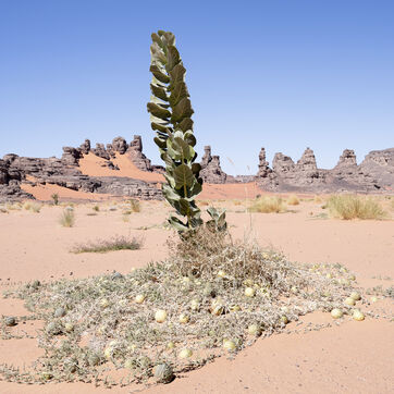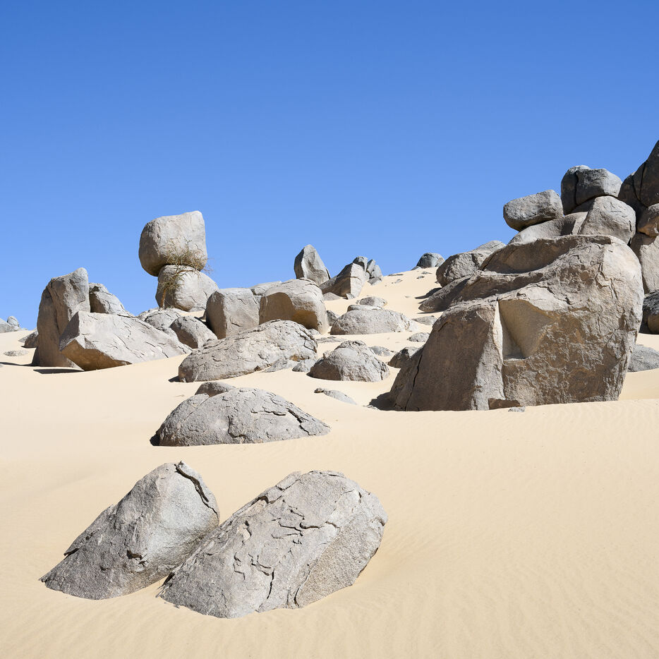 There are no permanent water points in this area of several hundred square kilometers, preventing anyone from settling there. The Algerian government has drilled there but never found any water. Yet rainfall can be torrential, as evidenced by the wide beds of some of the wadis, the whitish sediments that line their bottoms and the shrubs and bushes that struggle to grow. The water surges for a few hours, a few days at most, before disappearing into the region's sandstone soil.